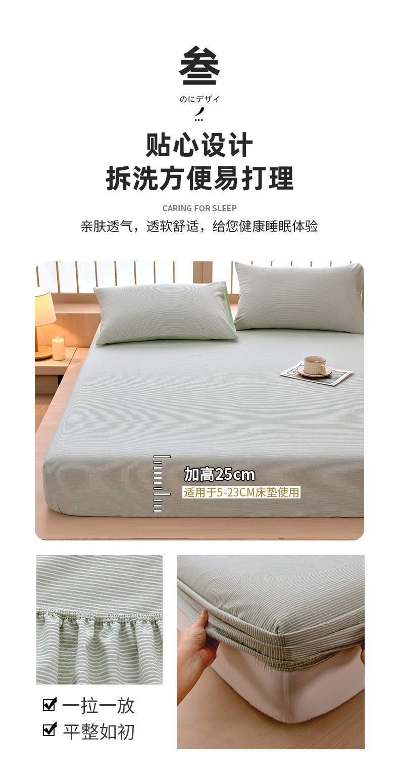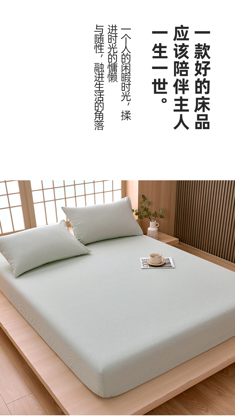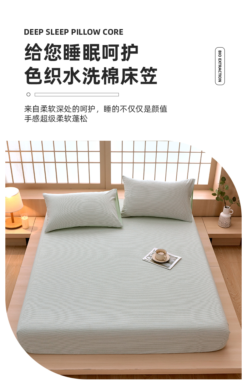 商品名称:春皖家纺 2026春夏新款全棉纯棉水洗棉单品系列床笠单件床笠单品-A版单床笠 细条绿