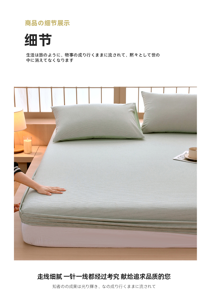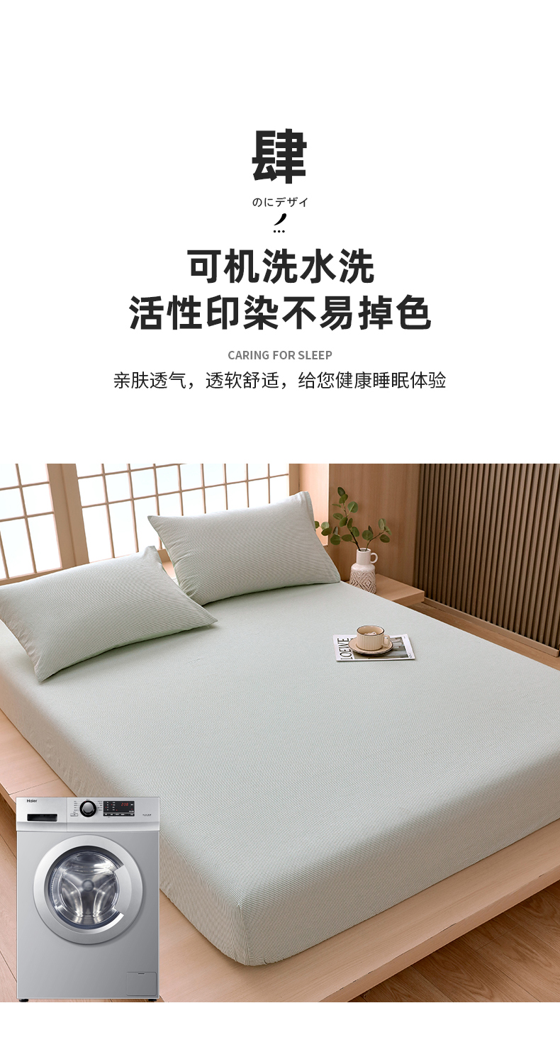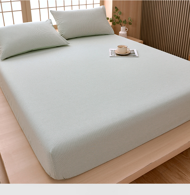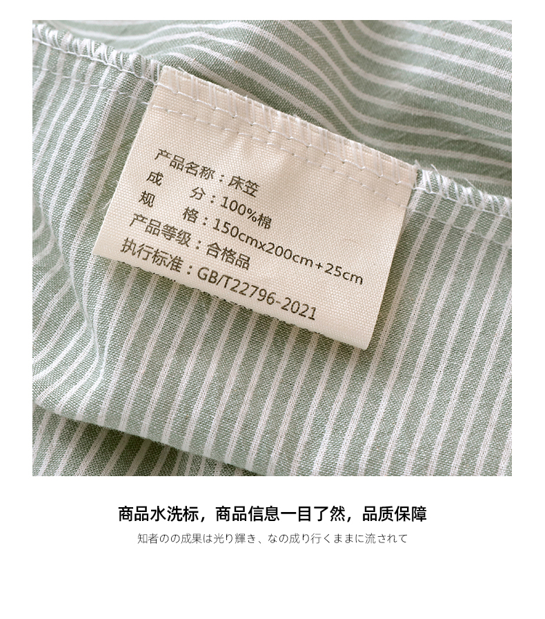 商品名称:春皖家纺 2026春夏新款全棉纯棉水洗棉单品系列床笠单件床笠单品-A版单床笠 细条绿
