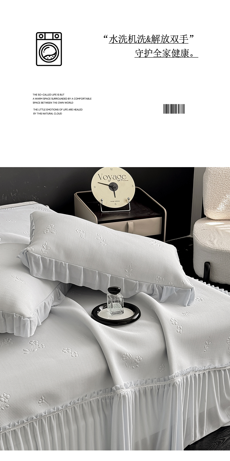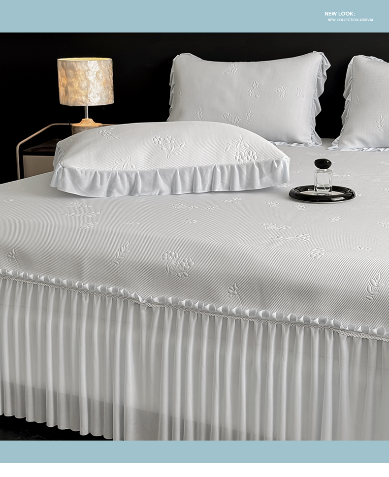 商品名称:宅家居 2026春夏新款PE高分子复合软凉席豆豆席大床裙三件套-小花系列 小花-灰色