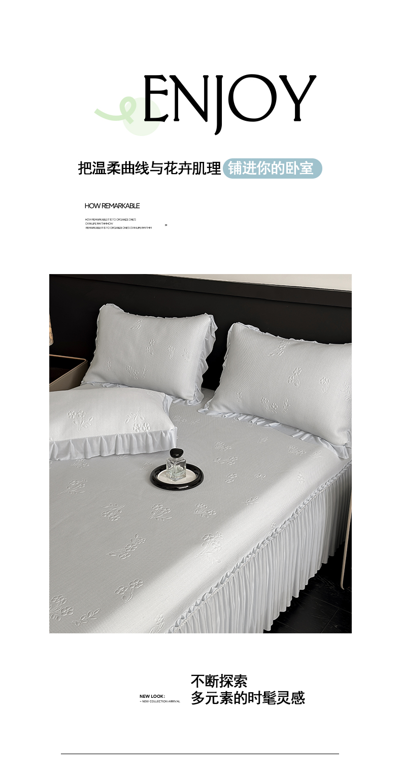 (总)宅家居 2026春夏新款PE高分子复合软提花凉席豆豆席大床裙三件套-暗香系列,暗香-豆沙,暗香-灰色,暗香-蓝色,暗香-绿色,暗香-香槟
