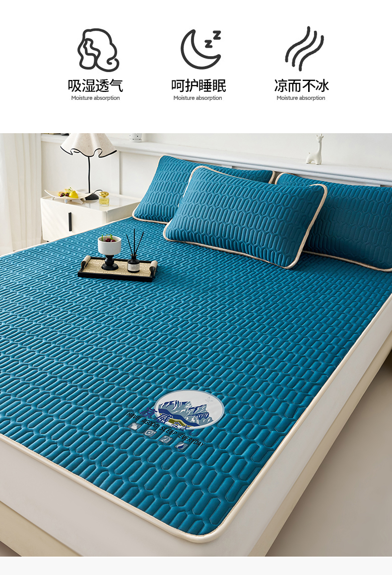 (总)奇丝雅 2026新款夏季A类碳光凉席三明治透气网冰丝凉席家用双人冰丝席床单可机洗单人学生宿舍上下铺夏天空调软席三件套,冰爽-粉,冰爽-灰,冰爽-蓝,冰爽-绿