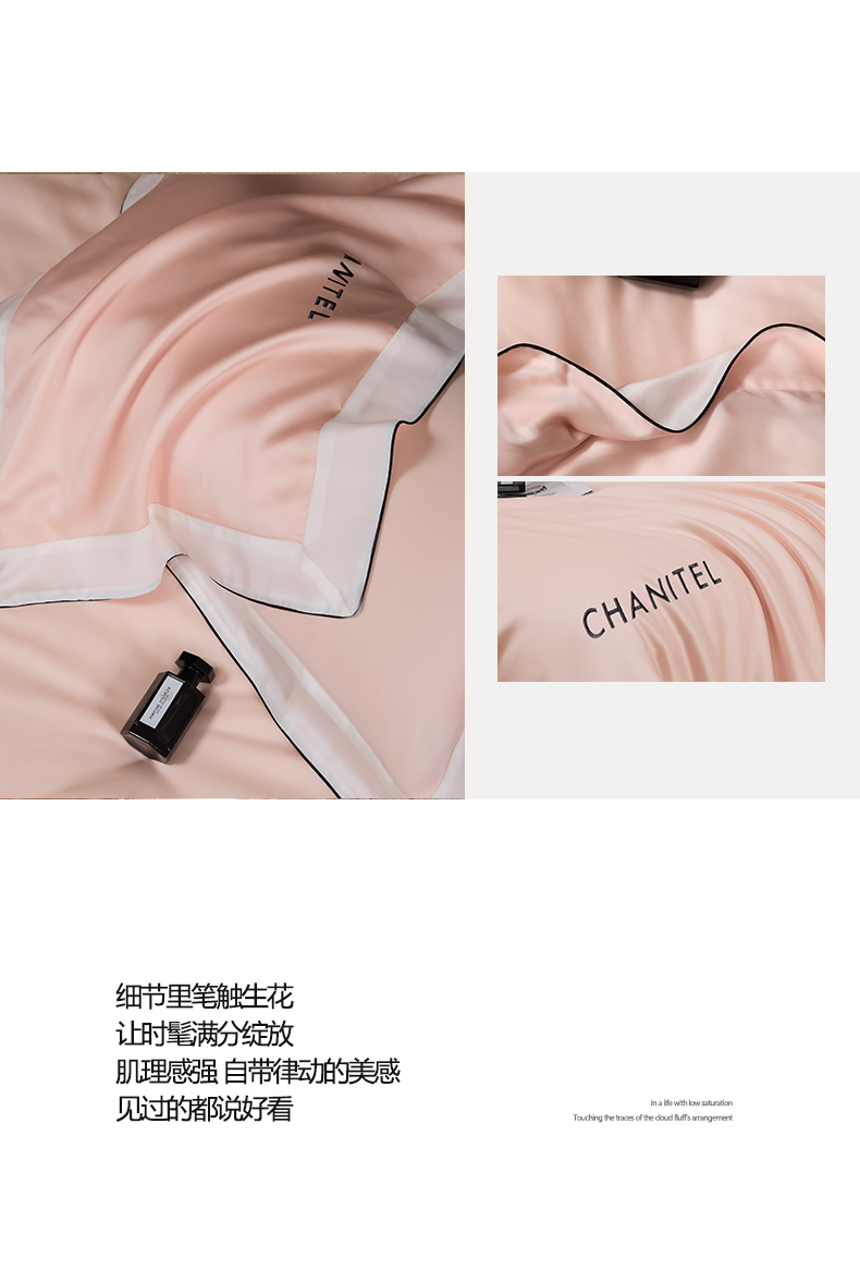 商品名称:DC 2026新款天丝刺绣拼角麻绳宽边四件套--戴芬系列 戴芬-半熟蜜桃