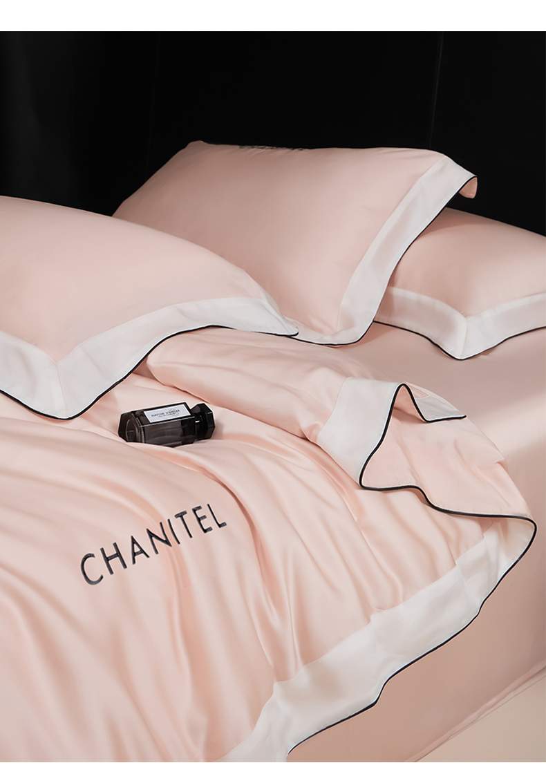 (总)DC 2024新款60S天丝印花刺绣四件套-雪莉系列,半熟蜜桃,冰川蓝,香谷槟,星辰绿,椰子灰,元气白桃