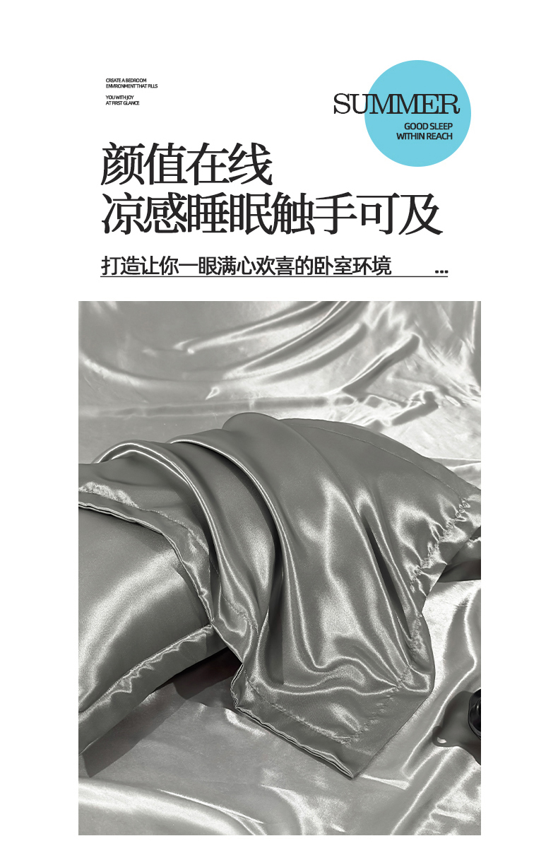 商品名称:永旺家纺 2026新款水洗冰丝纯色枕套单品枕套枕套单件 高级灰