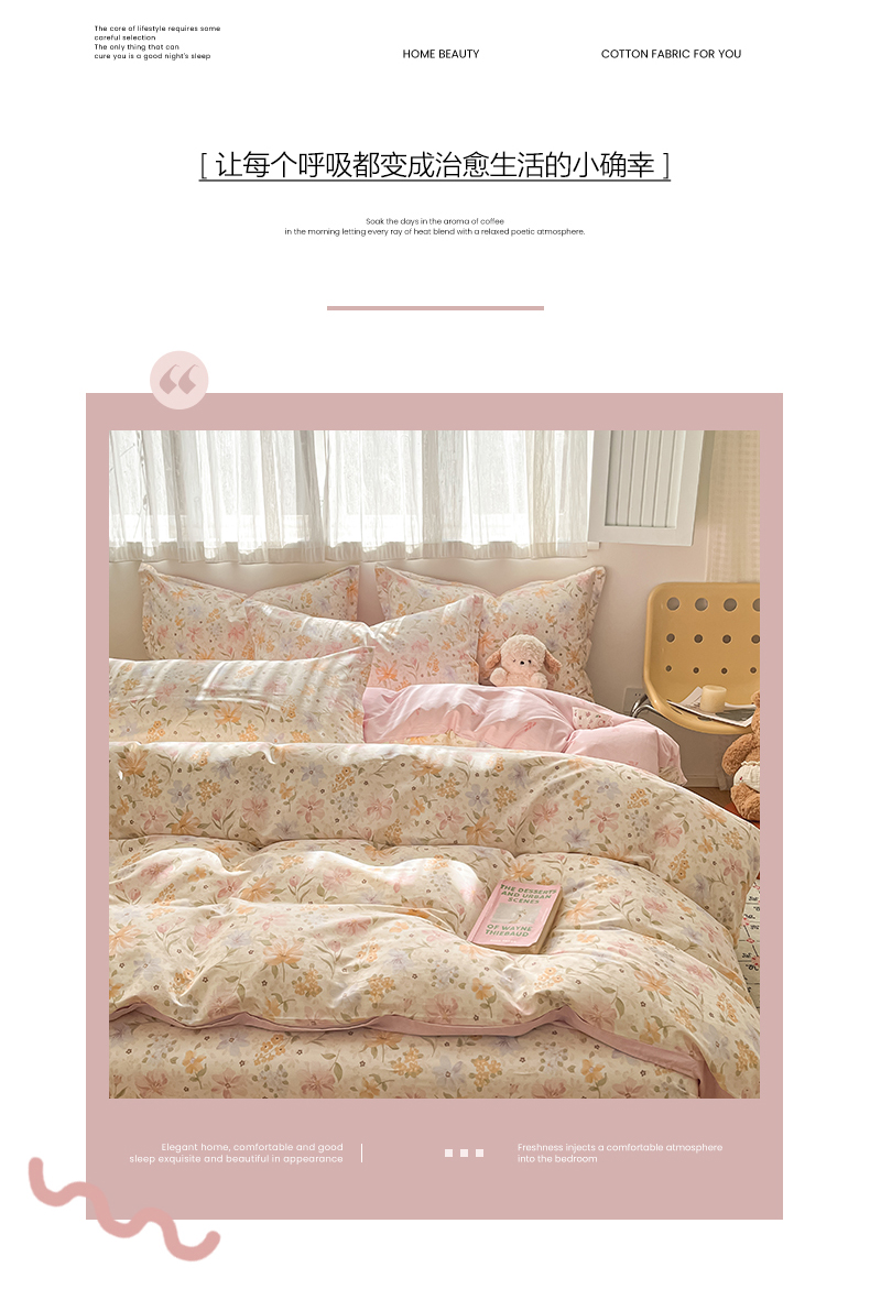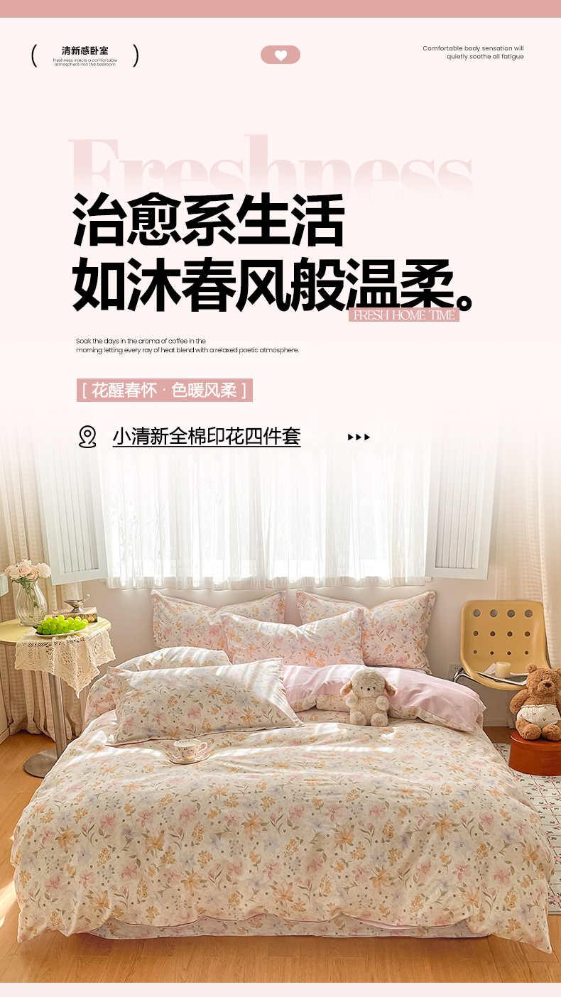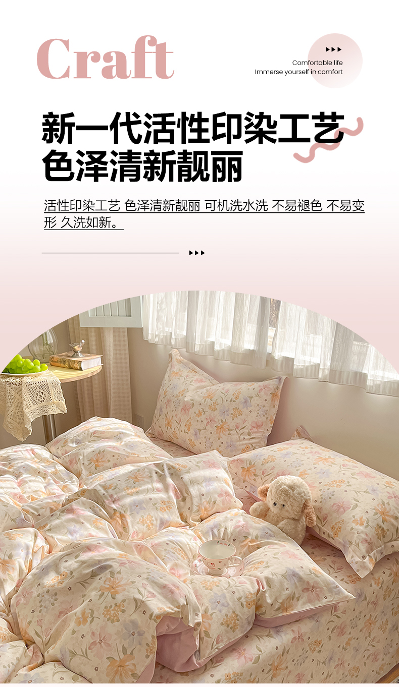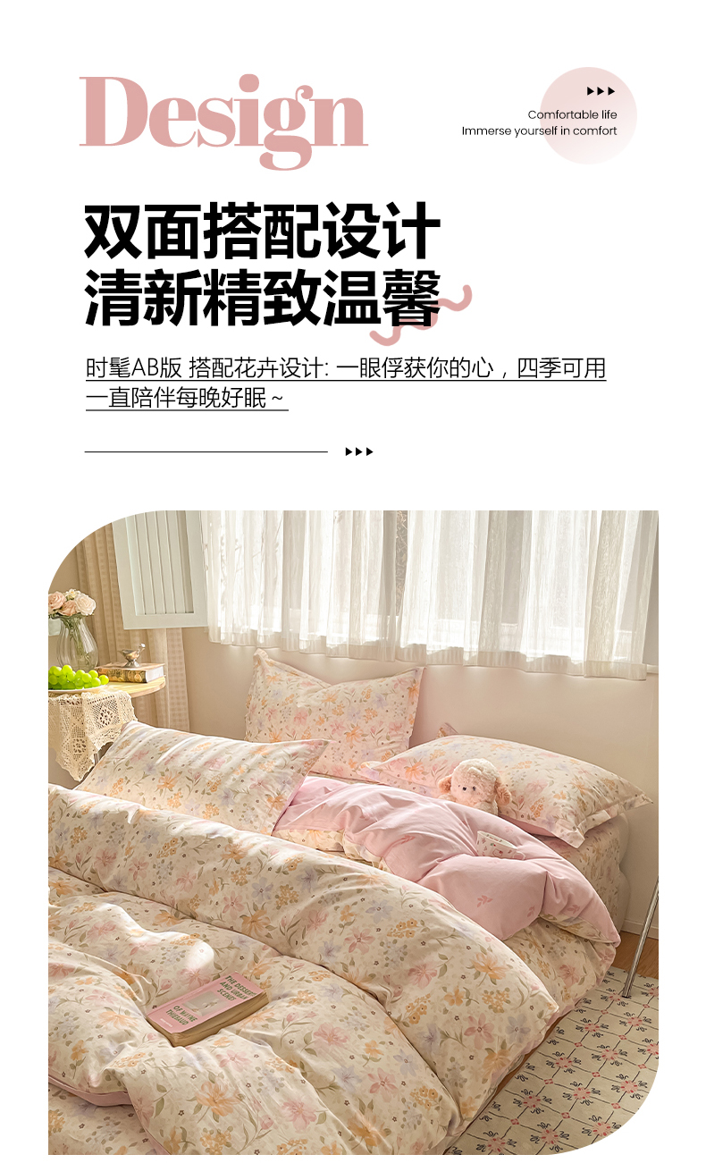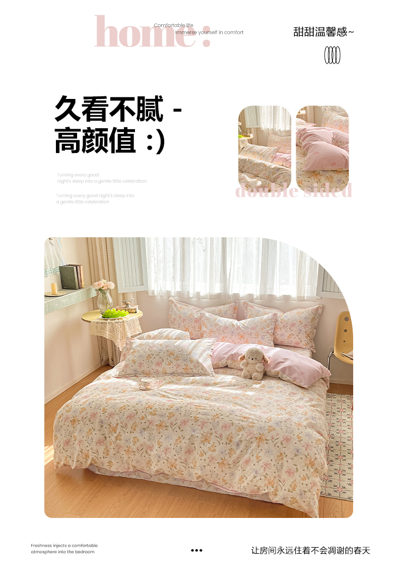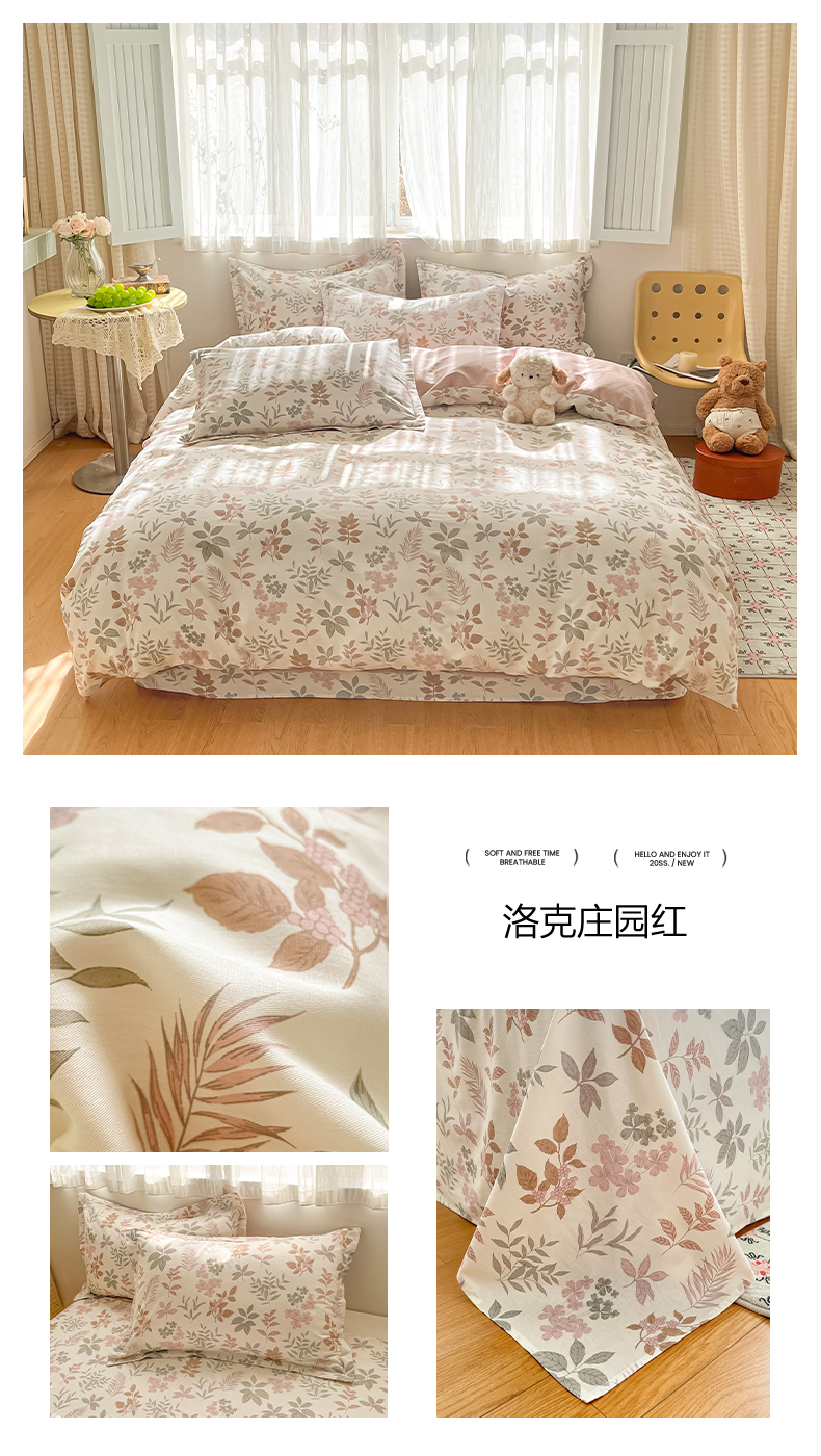 当前位置: 91家纺网 > 商品网购 > 床品套件 > 四件套 > 全棉普通四件套 > 女子家纺 2026新款全棉纯棉印花单品系列花卉款四件套 苏糖粉