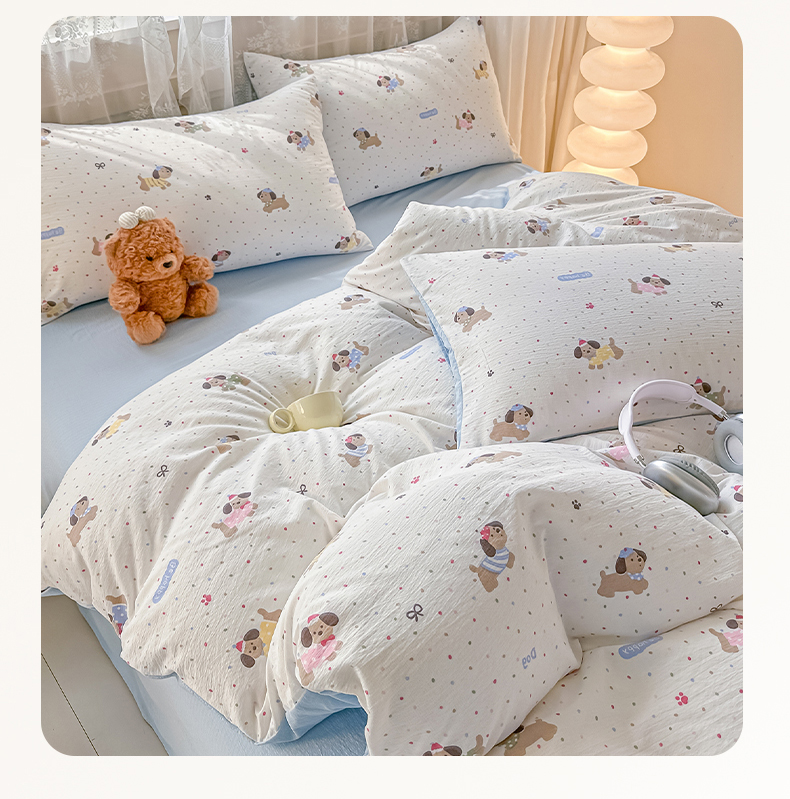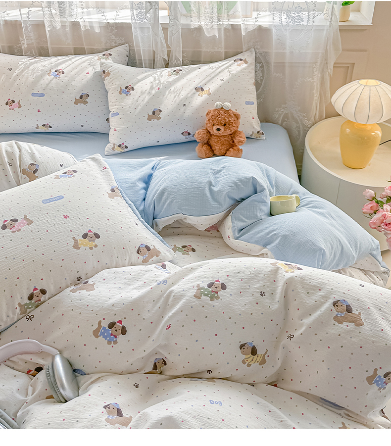 侯先生家纺新款直播爆款云感双层纱皱皱纱单被套小清新水洗棉 童趣小狗