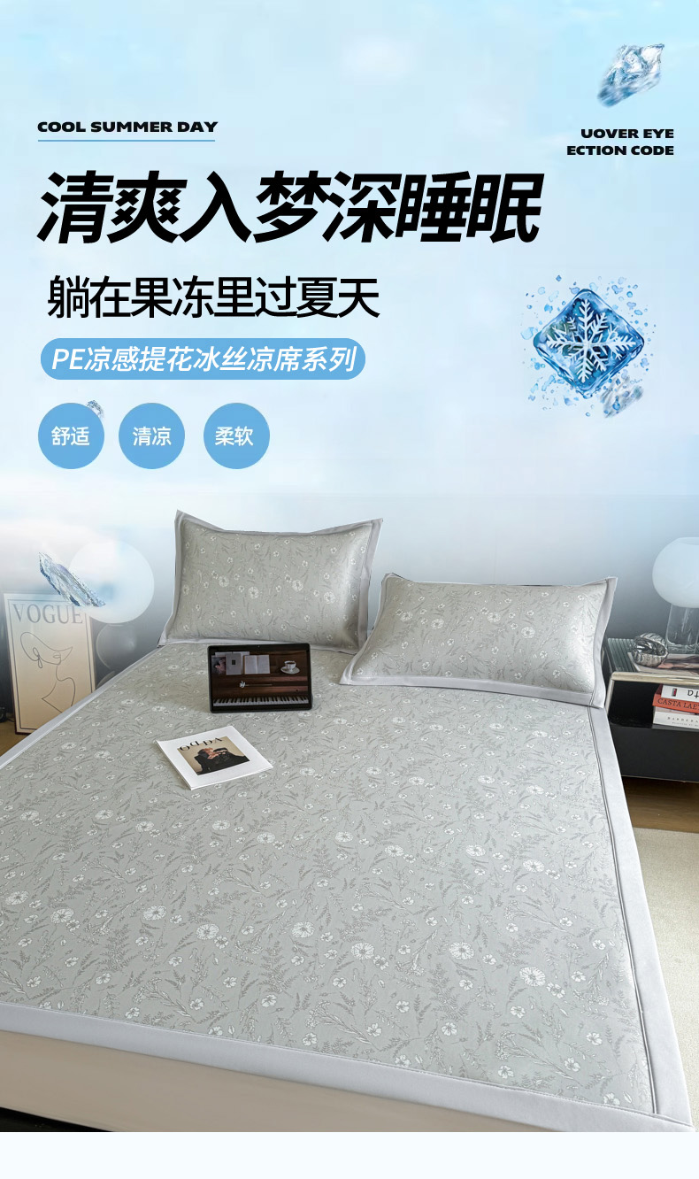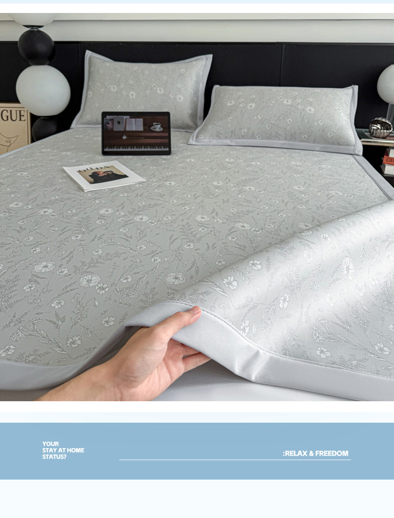 (总)倾慕家纺 2026新款PE50提花凉感冰丝凉席,花星点点粉,花星点点灰,花星点点绿,简蝶粉,简蝶蓝,叶繁粉,叶繁灰,叶繁蓝,叶繁绿,针叶粉,针叶蓝,针叶绿,组合