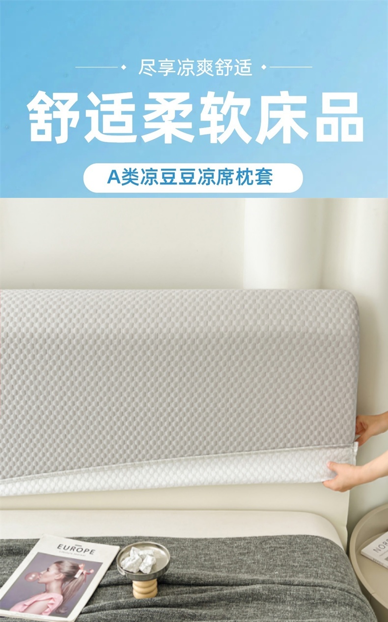 商品名称:梦舒羽 2026新款A类凉感冰豆豆凉席床头罩靠背套-有外贸尺寸可以联系 凉豆豆-海盐灰