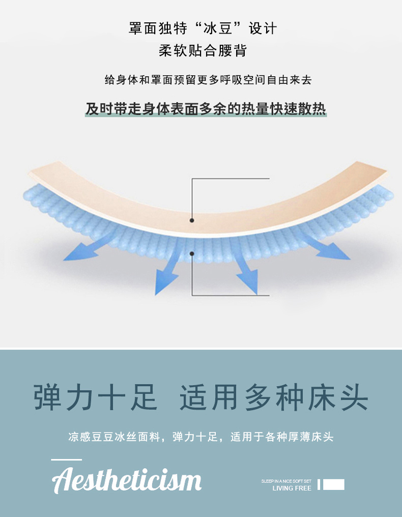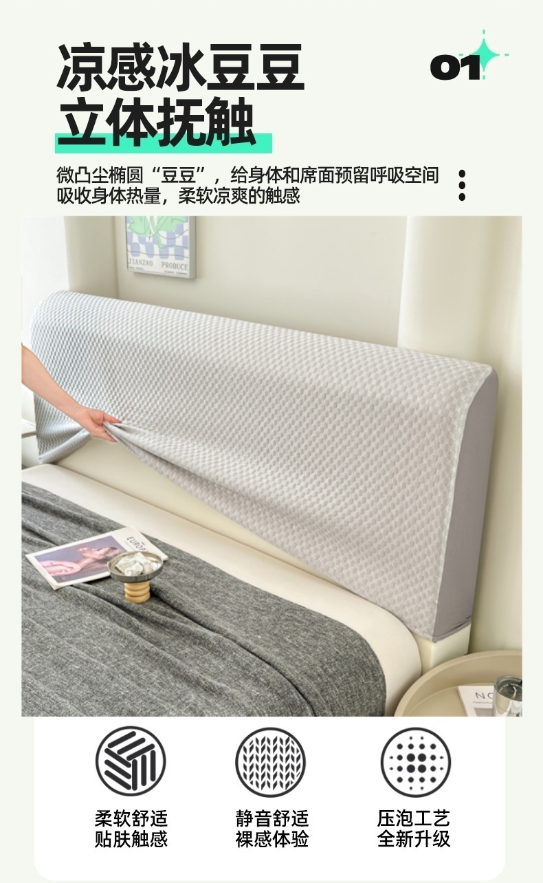 (总)梦舒羽 2026新款A类凉感冰豆豆凉席床头罩靠背套-有外贸尺寸可以联系,凉豆豆-清澈绿,凉豆豆-仙气粉,凉豆豆-宝石蓝,凉豆豆-海盐灰