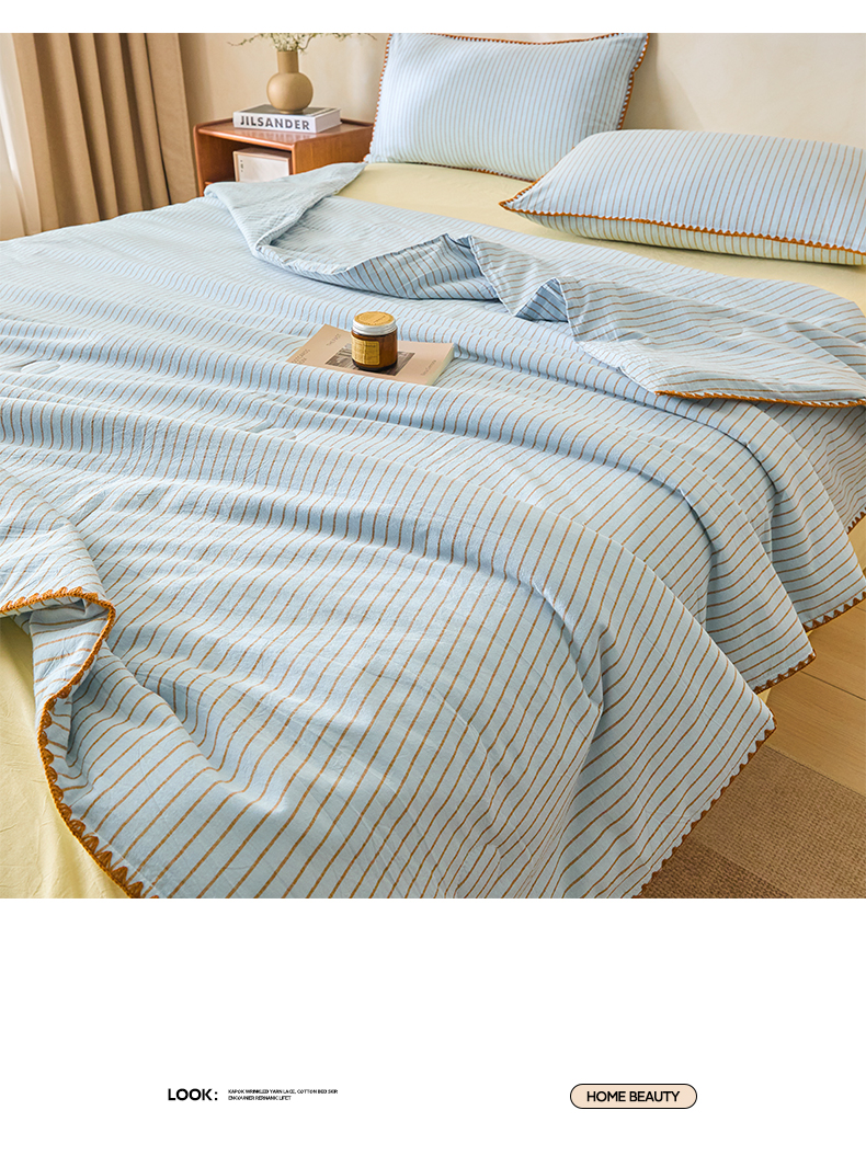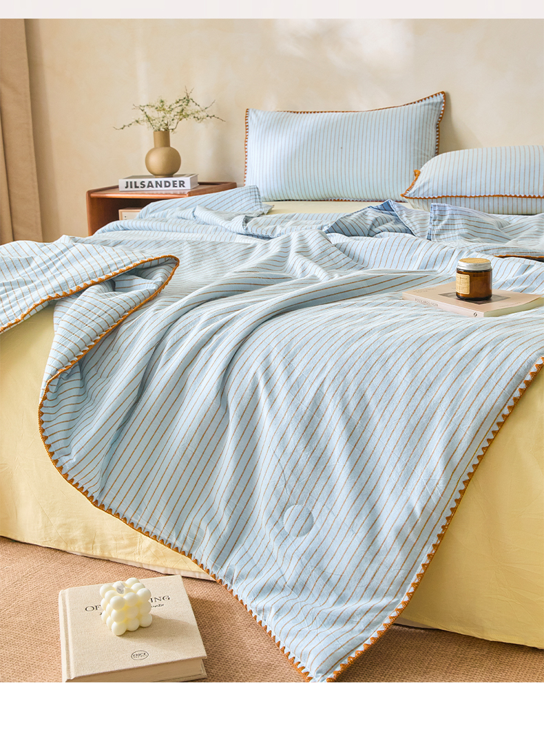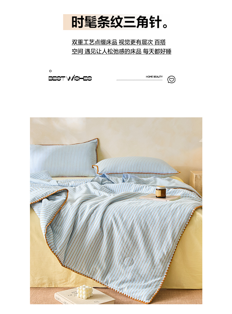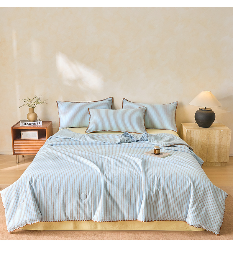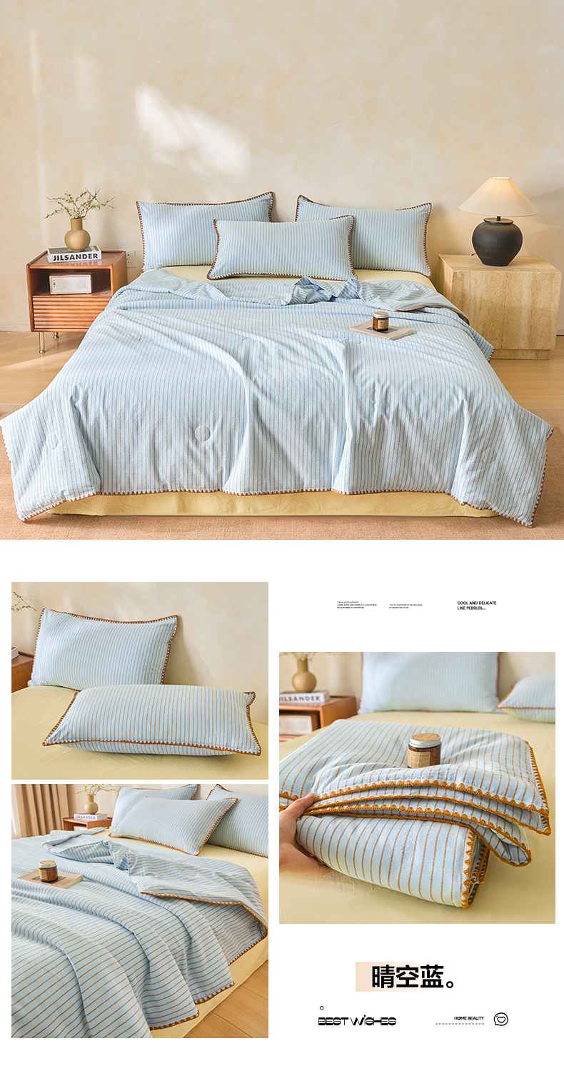 当前位置: 91家纺网 > 商品网购 > 床品套件 > 四件套 > 夏被四件套 > 如一 2026新款全棉色织水洗棉条纹三角针夏被四件套 晴空蓝
