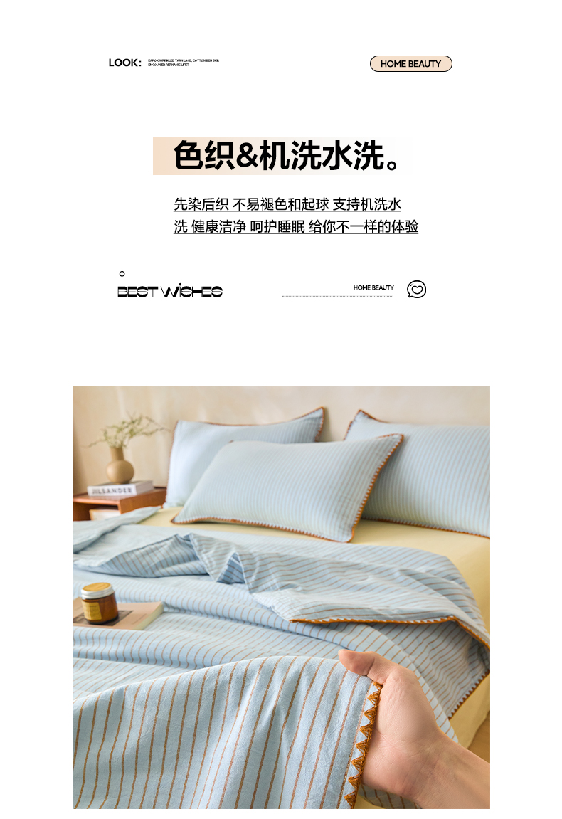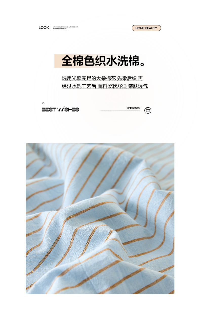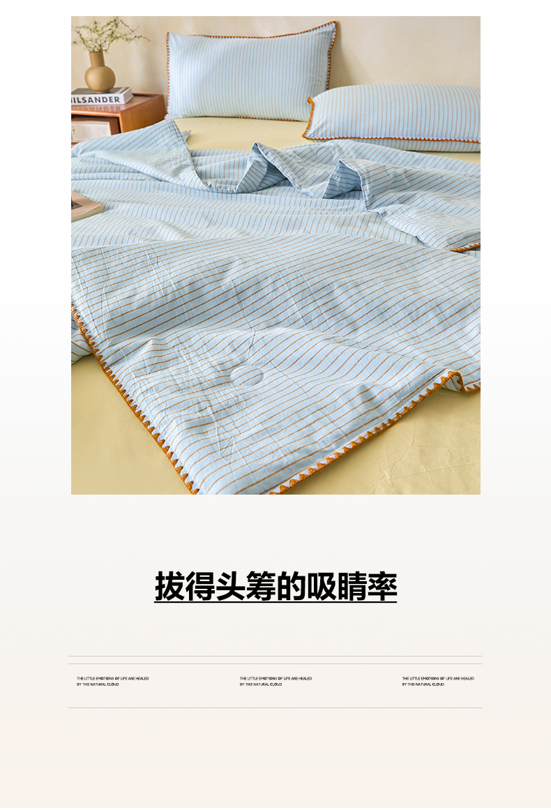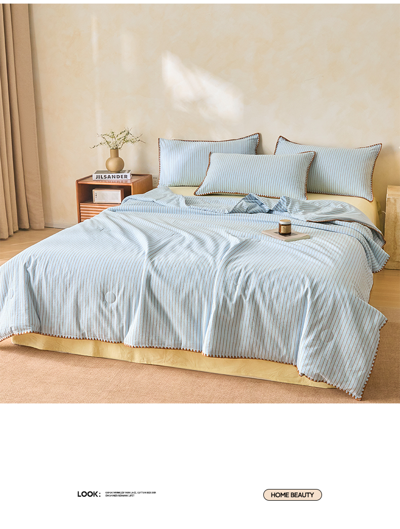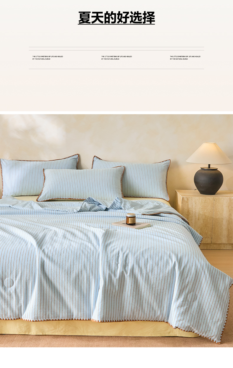当前位置: 91家纺网 > 商品网购 > 床品套件 > 四件套 > 夏被四件套 > 如一 2026新款全棉色织水洗棉条纹三角针夏被四件套 晴空蓝