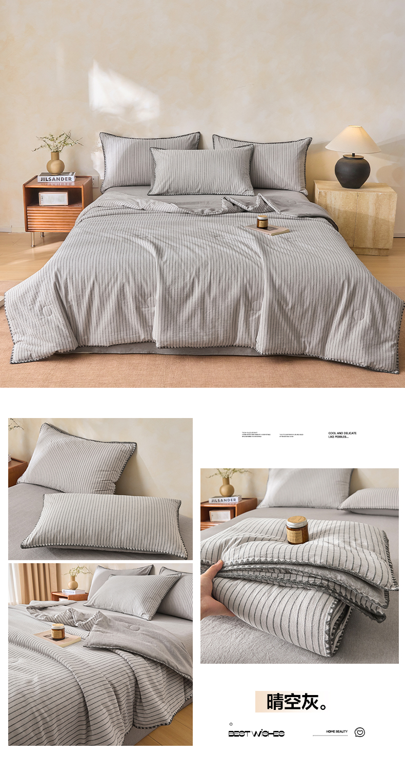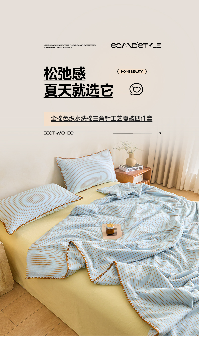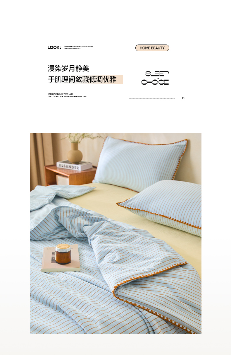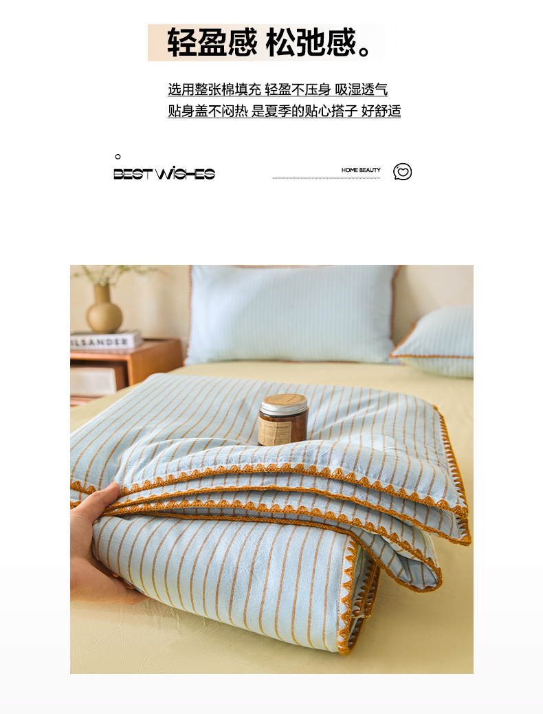 当前位置: 91家纺网 > 商品网购 > 床品套件 > 四件套 > 夏被四件套 > 如一 2026新款全棉色织水洗棉条纹三角针夏被四件套 晴空蓝