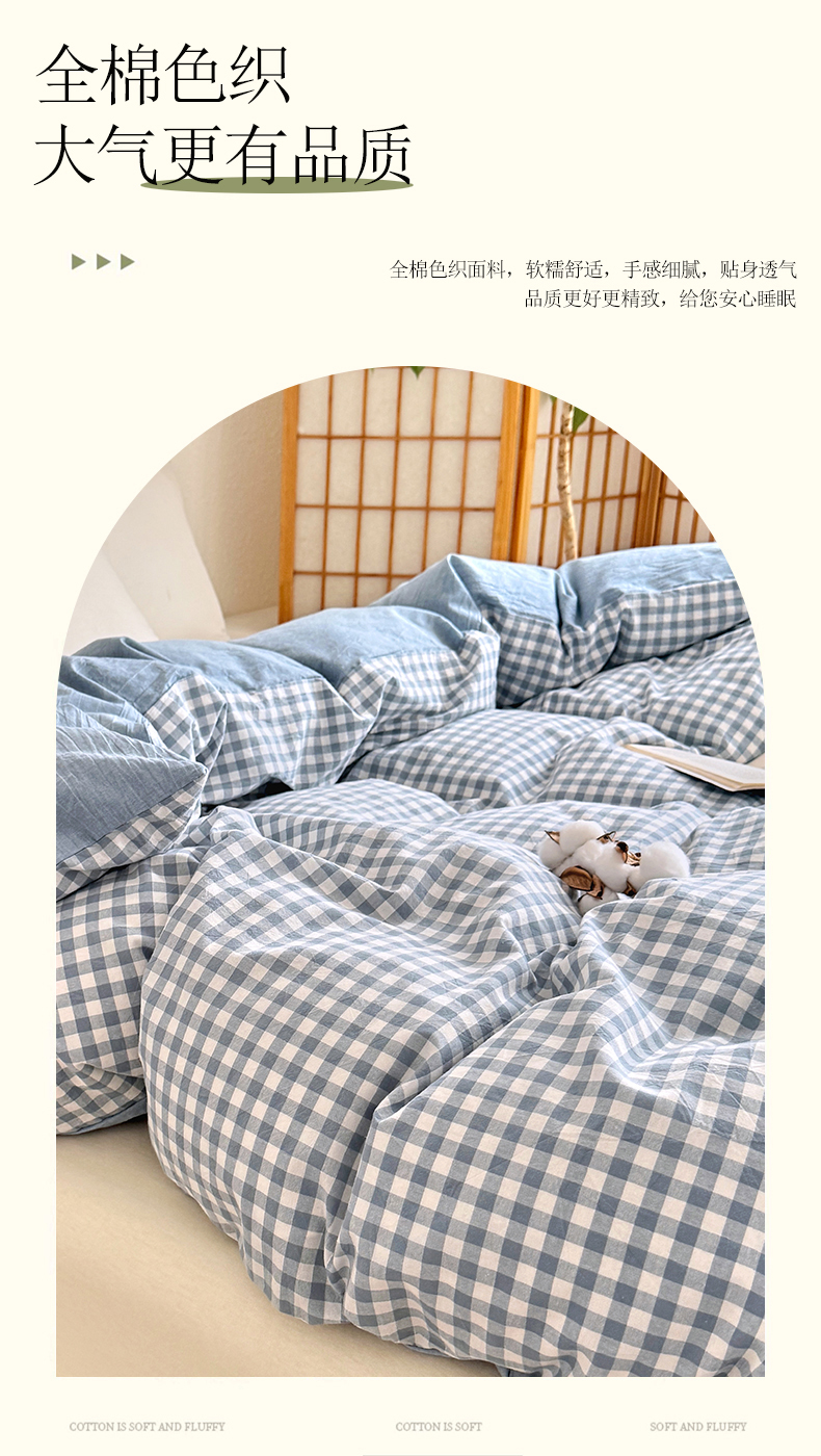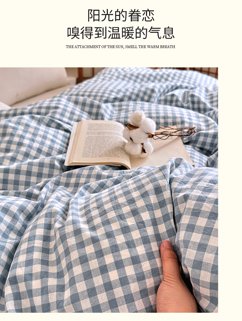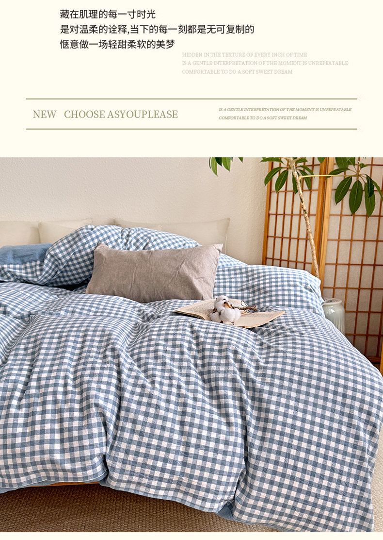(总)家贝爱 2026新款全棉纯棉水洗色织被套单件被套单品单被套,大蓝格,粉韵格,海蓝格,简夕格,简易蓝,蓝橙格,蓝黄格,马卡绿格,时尚桔,雾莲格,小咖格,小蓝格,雅尚蓝,中灰格