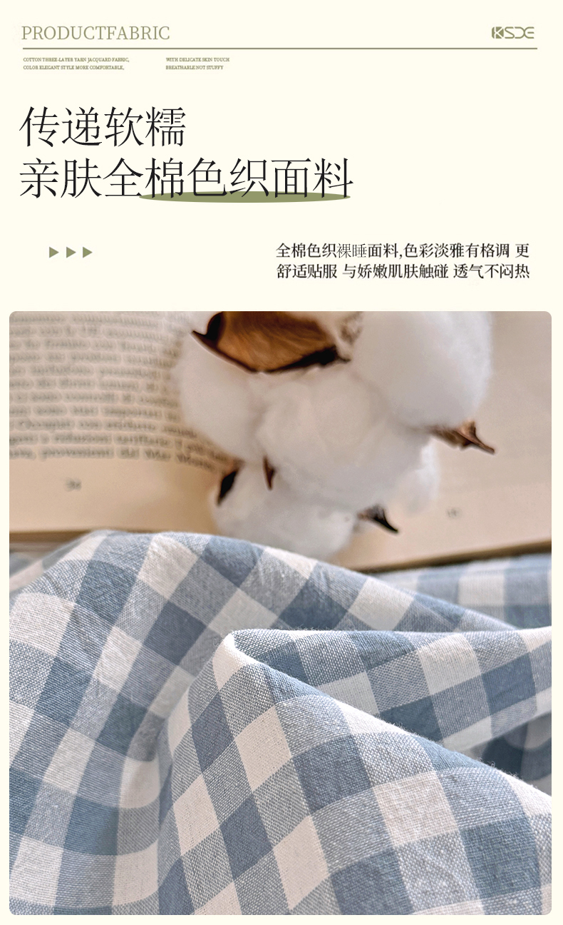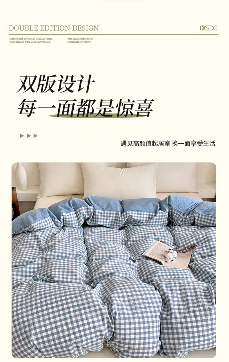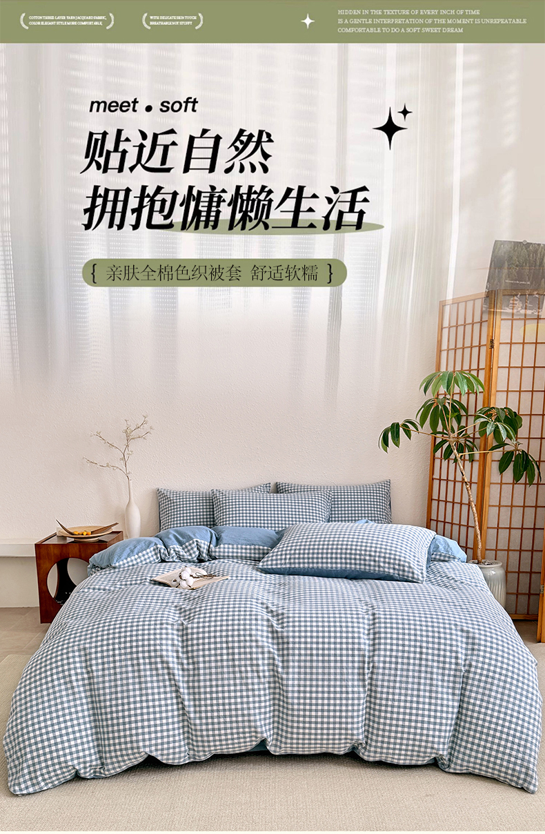 • 91家纺网 家纺一手货源 找家纺 家贝爱 2026新款全棉纯棉水洗色织被套单件被套单品单被套 小蓝格