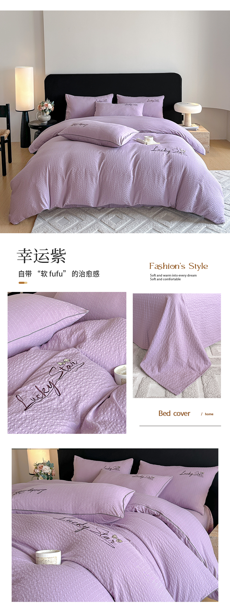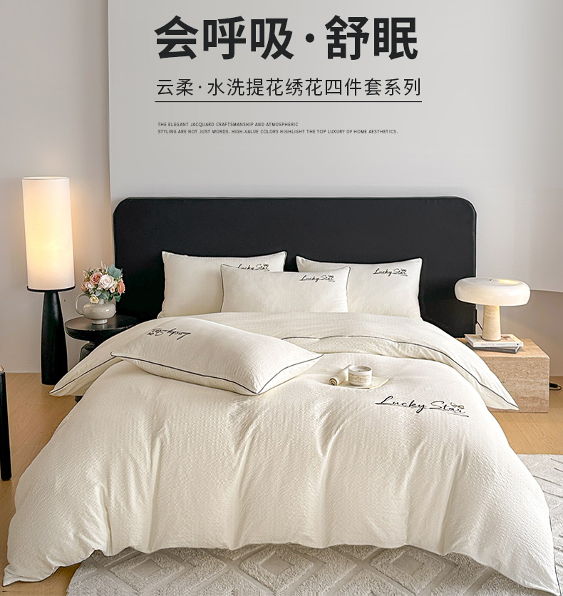 (总)利欧 2026新款水洗棉四件套提花四件套刺绣四件套-幸运,幸运蓝,幸运白,幸运黑,幸运灰,幸运米黄,幸运深蓝,幸运驼,幸运玉,幸运紫