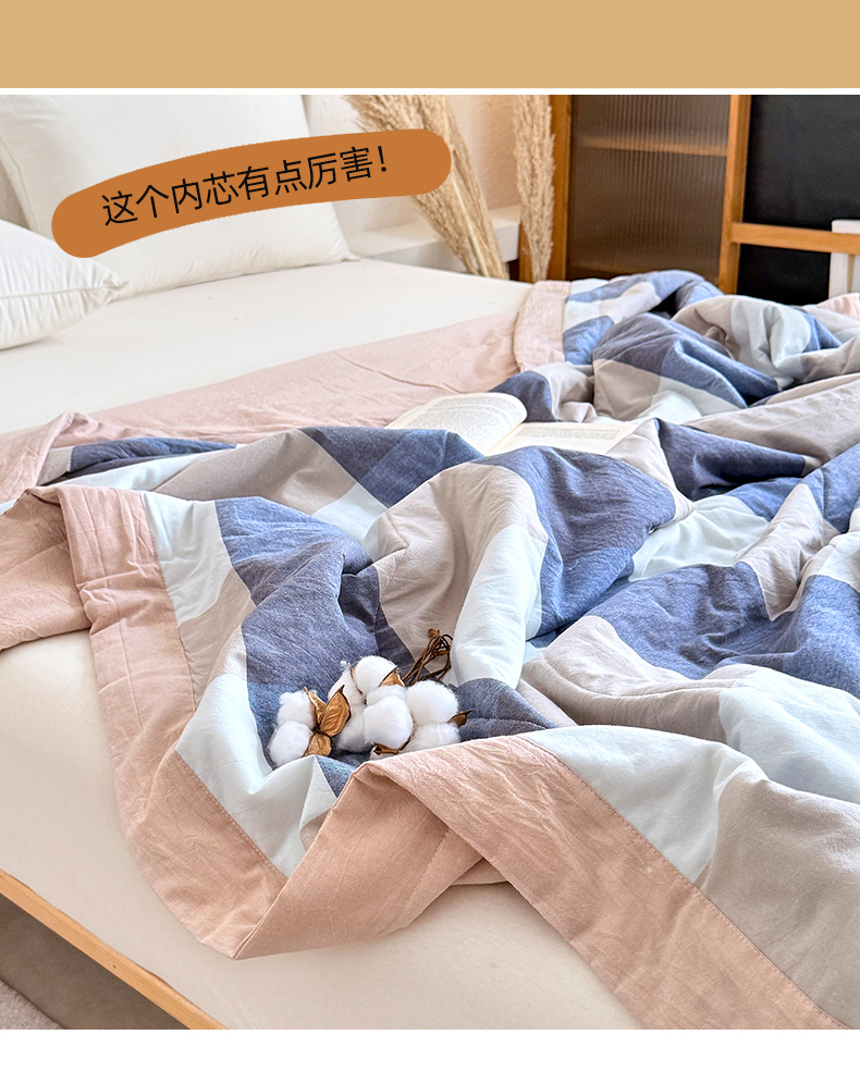 (总)家贝爱 2026新款全棉色织新疆棉花夏被夏凉被空调被,大蓝格,粉韵格,海蓝格,简夕格,简易蓝,蓝橙格,蓝黄格,马卡绿格,时尚桔,雾莲格,小咖格,小蓝格,雅尚蓝,中灰格