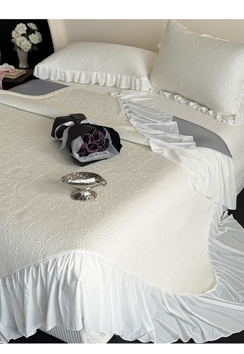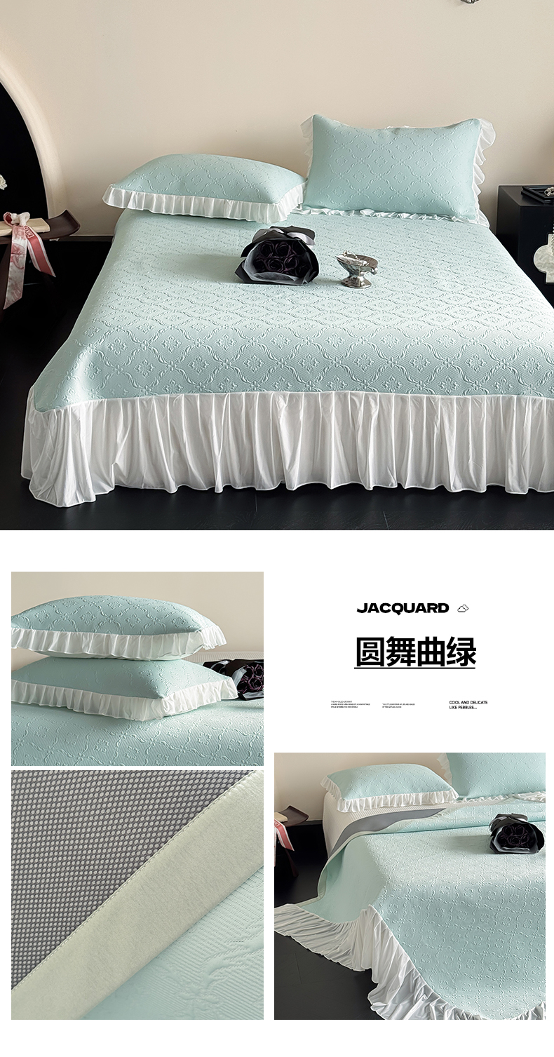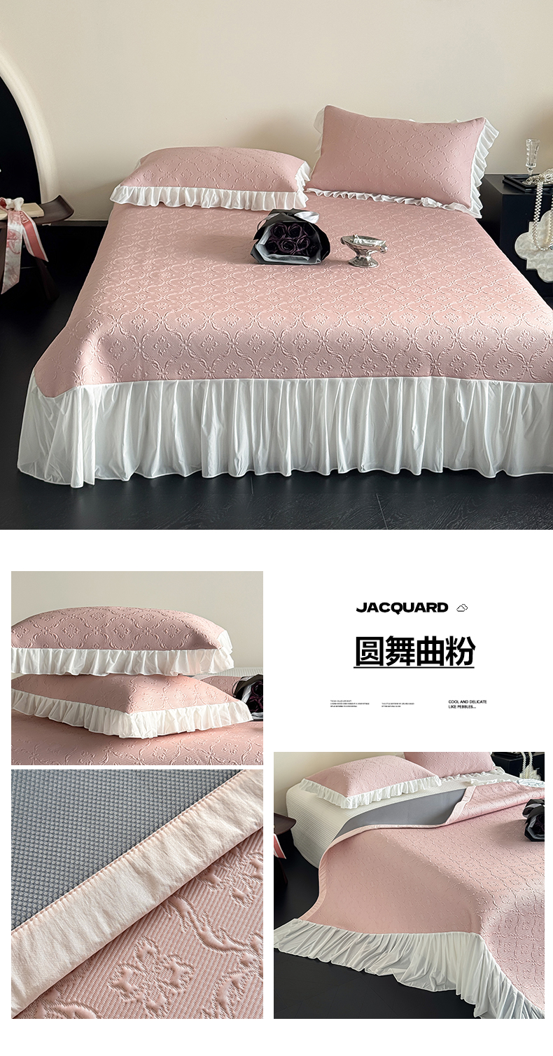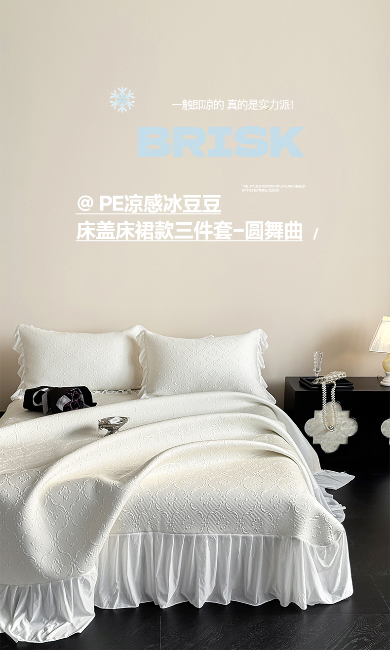 三味舒屋 2026新款PE凉感冰豆豆床盖床裙款三件套-圆舞曲 圆舞曲白