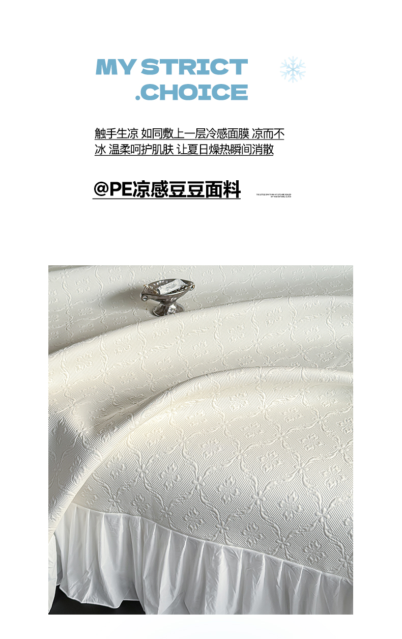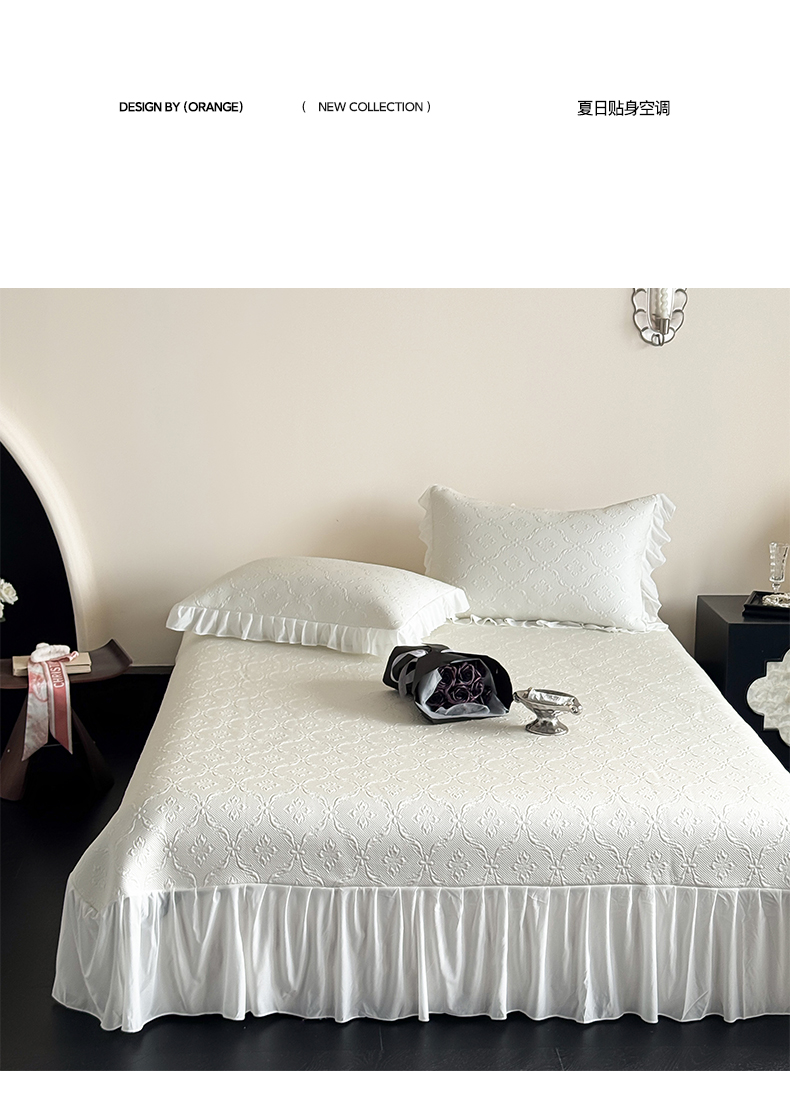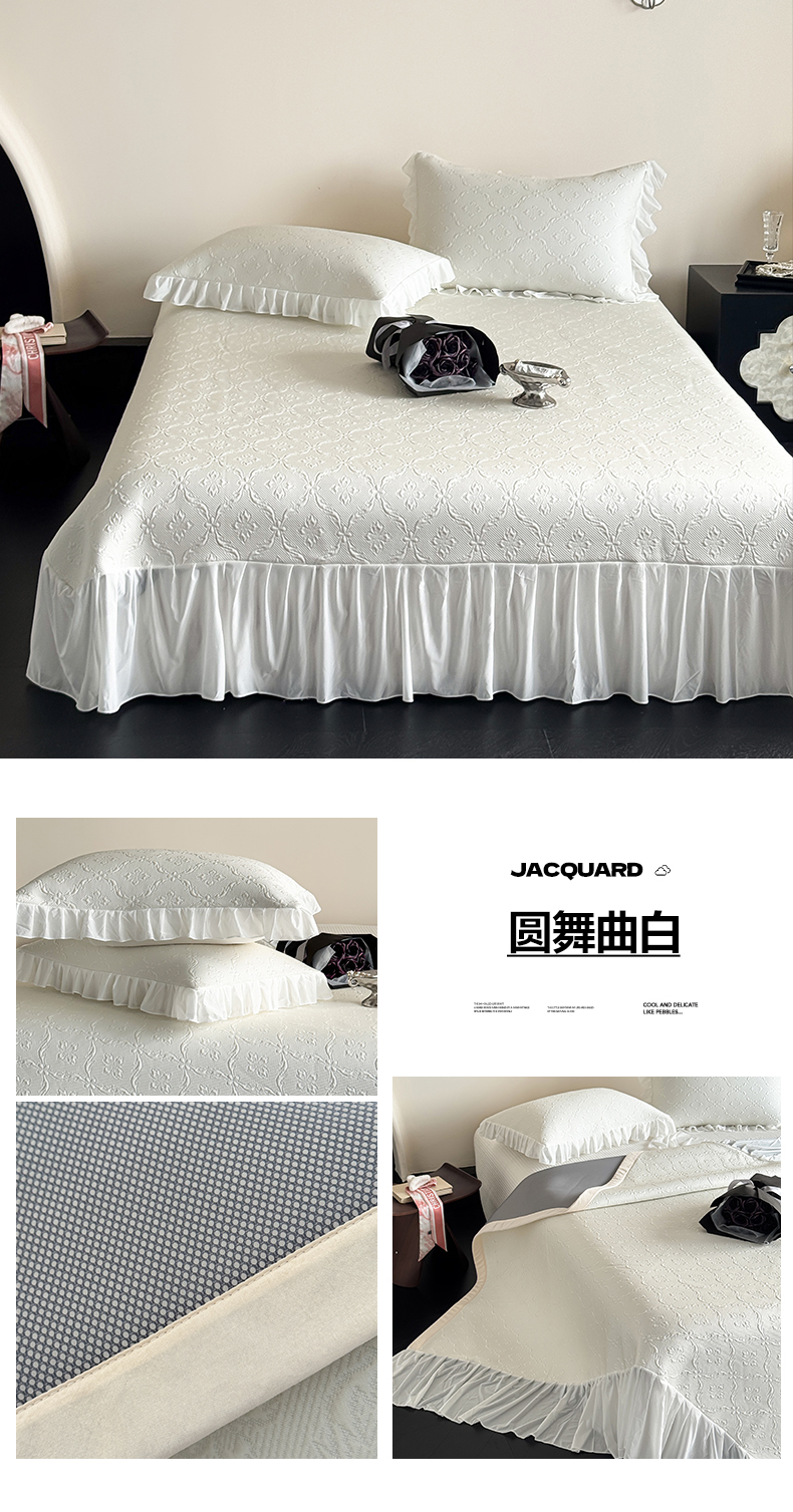 商品名称:三味舒屋 2026新款PE凉感冰豆豆床盖床裙款三件套-圆舞曲 圆舞曲白