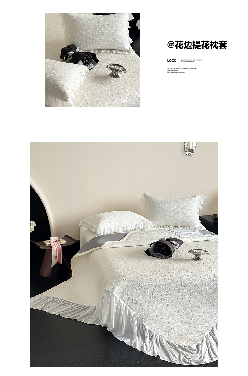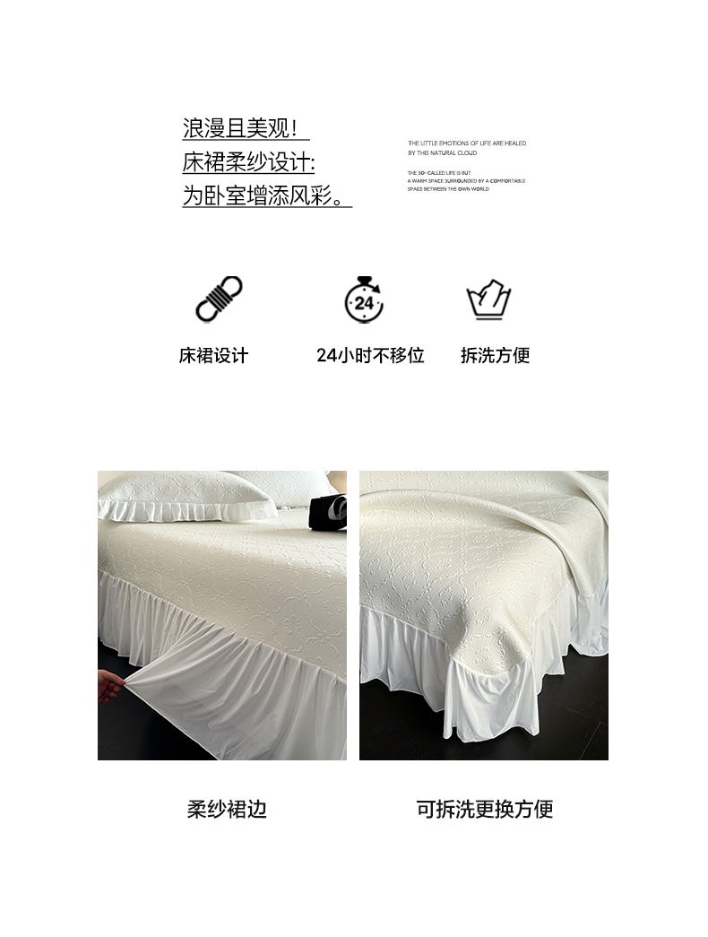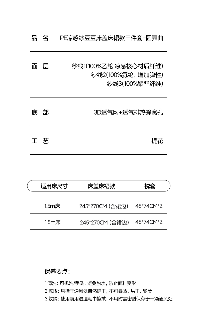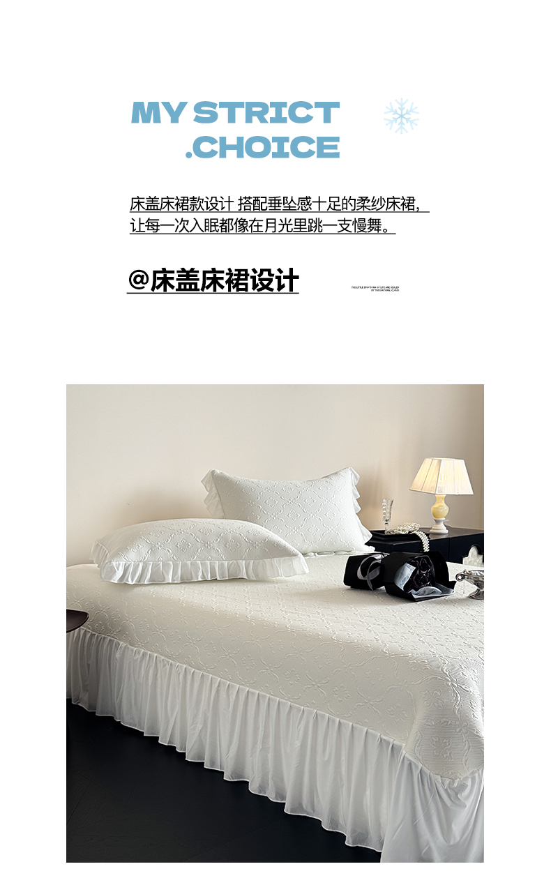 商品名称:三味舒屋 2026新款PE凉感冰豆豆床盖床裙款三件套-圆舞曲 圆舞曲白