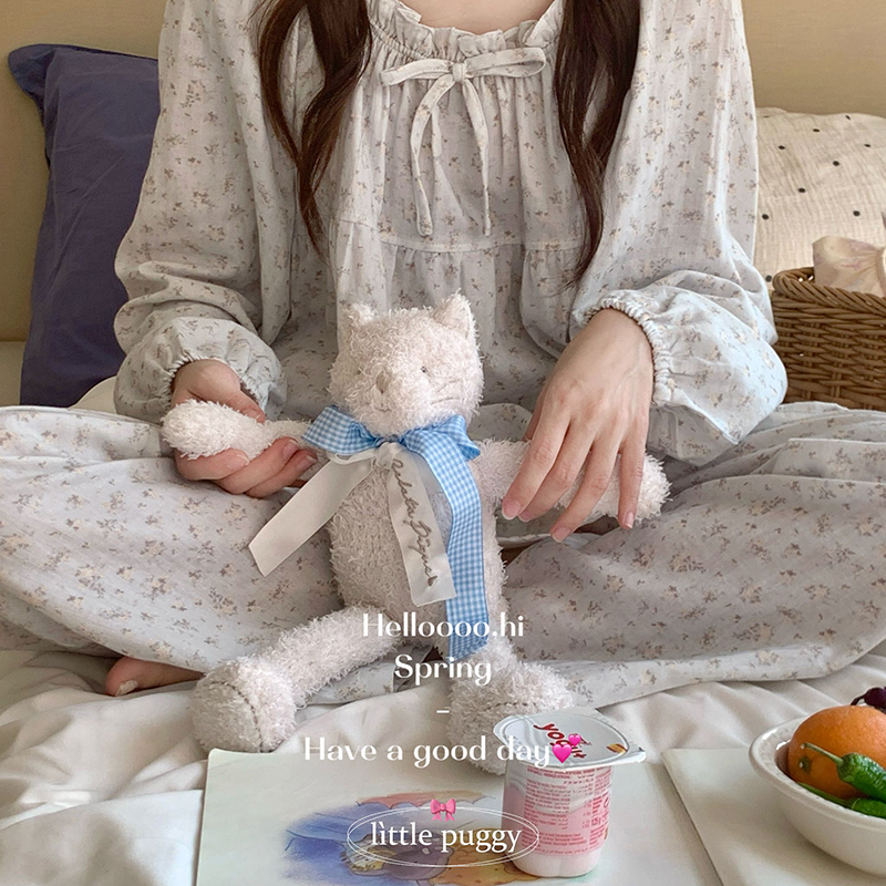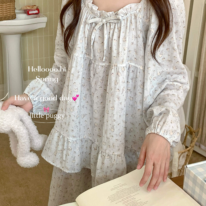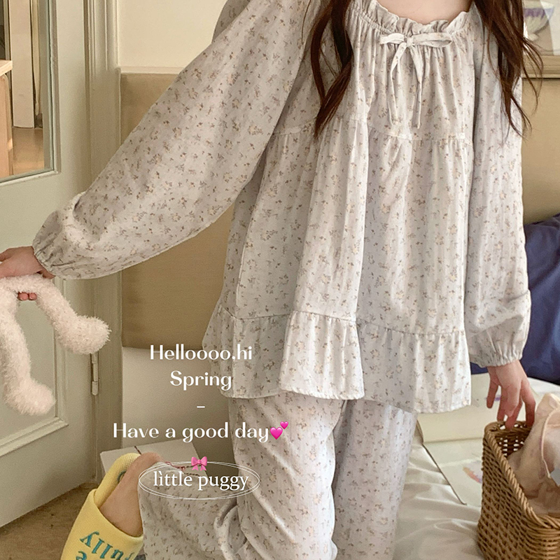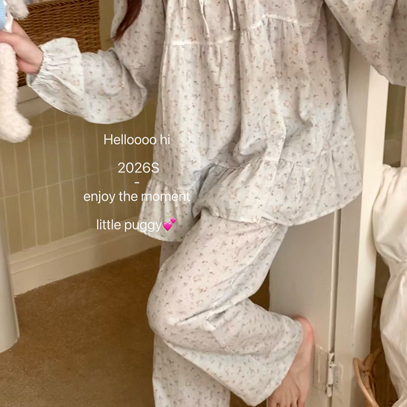 (总)妍景家居生活馆 2026新款针织棉 长袖碎花浅蓝家居服,针织棉 长袖碎花浅蓝