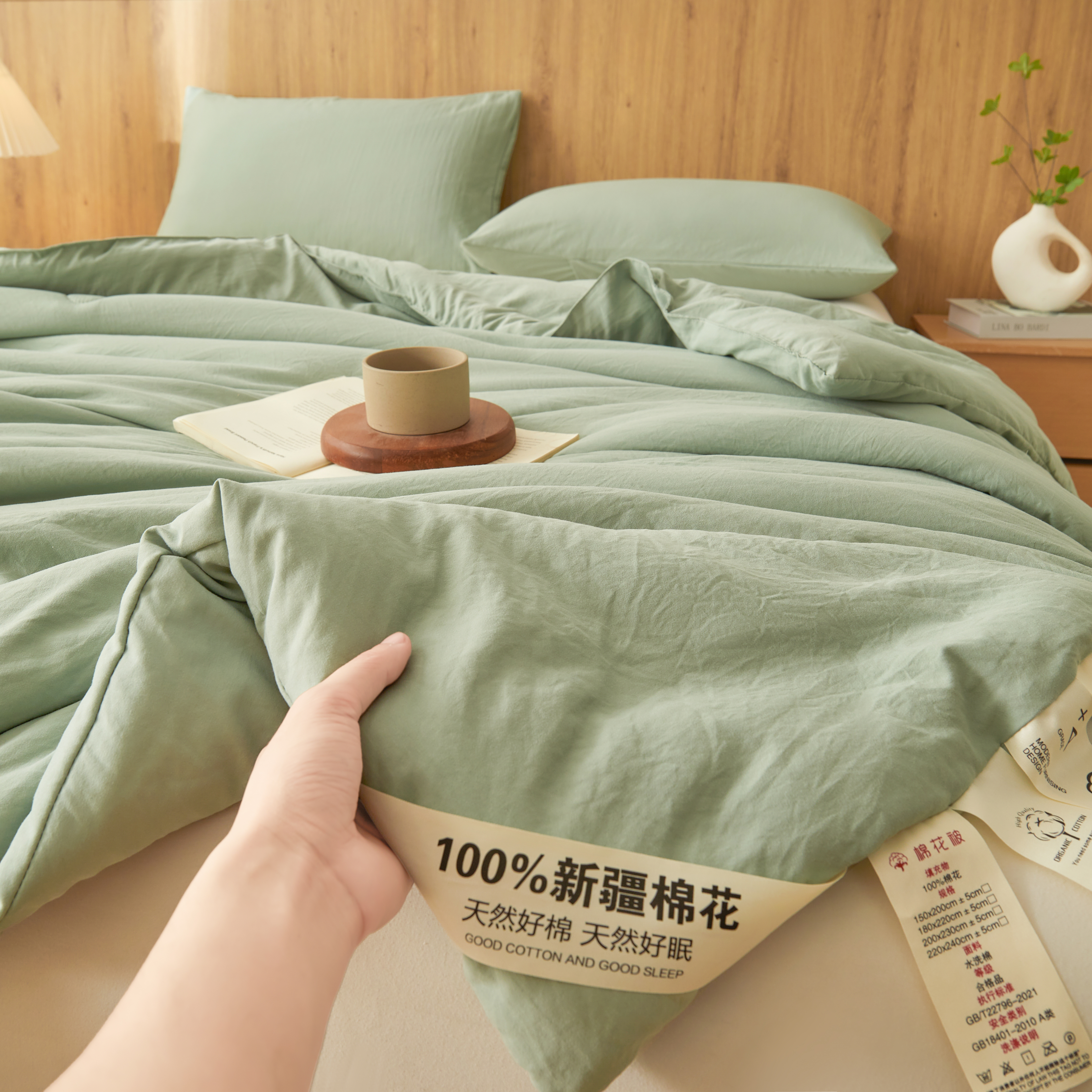 商品名称:思雅庭 2026新款100%水洗棉新疆棉花被 绿色