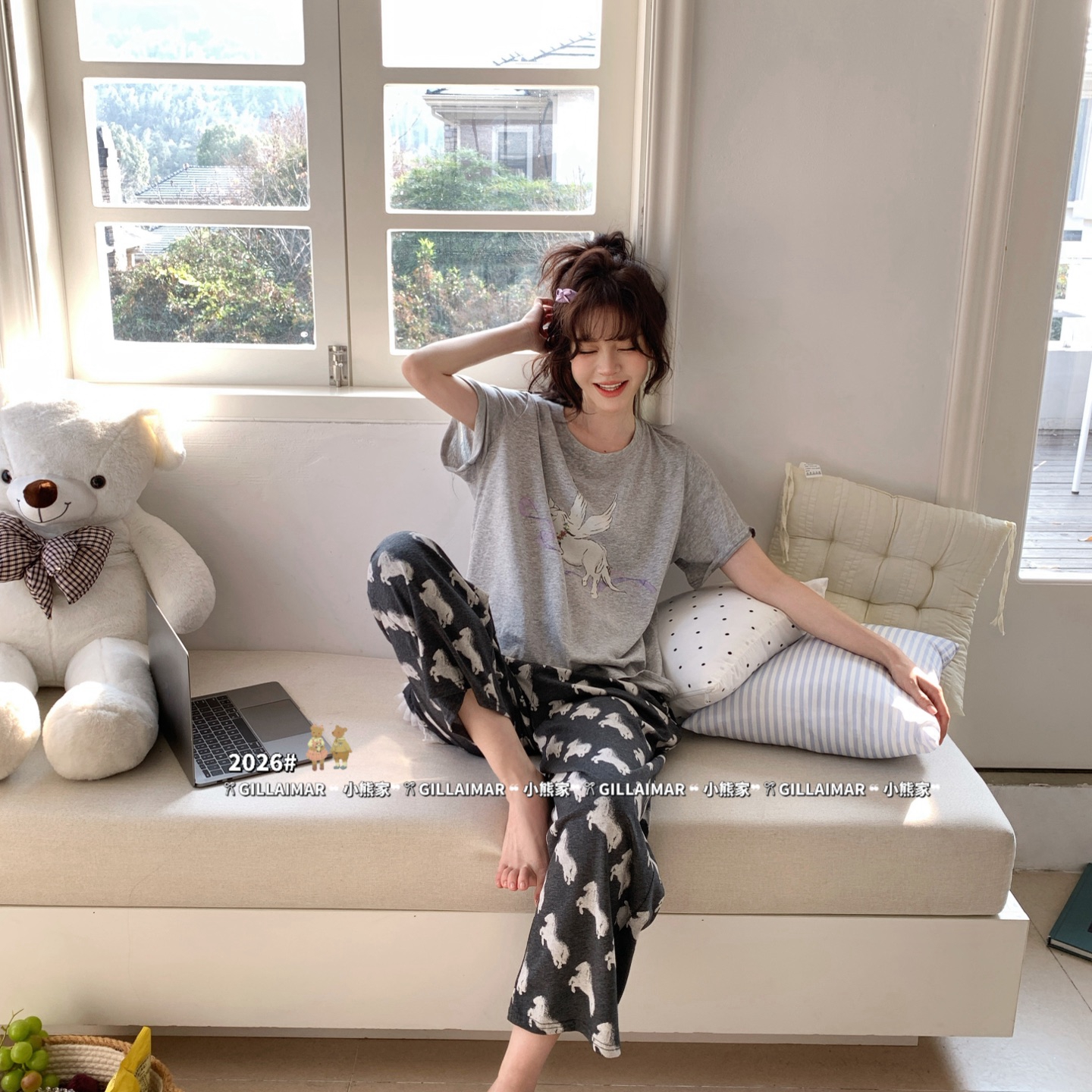 (总)妍景家居生活馆 2026新款竖条小奶狗家居服,竖条小奶狗