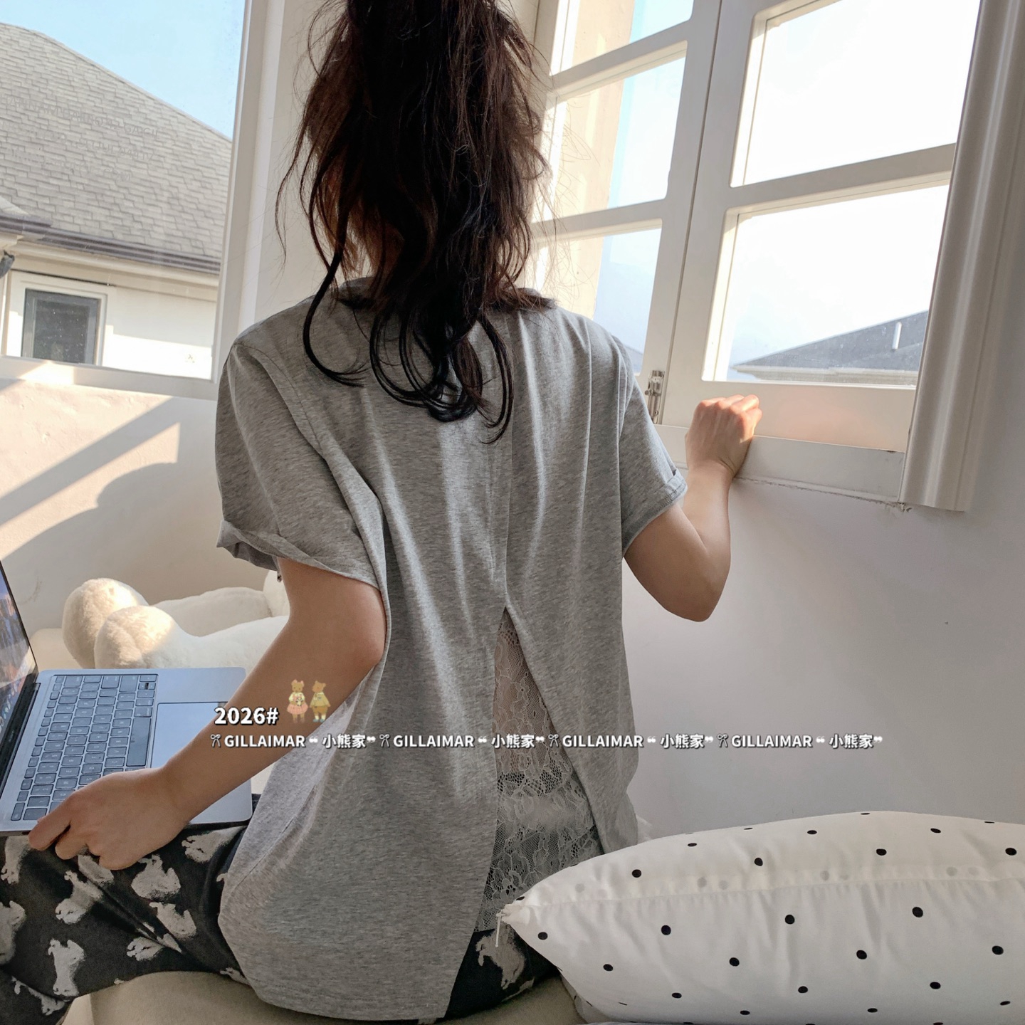 妍景家居生活馆 2026新款莱赛尔冰丝棉小熊家-马卡龙家居服 马卡龙-深灰