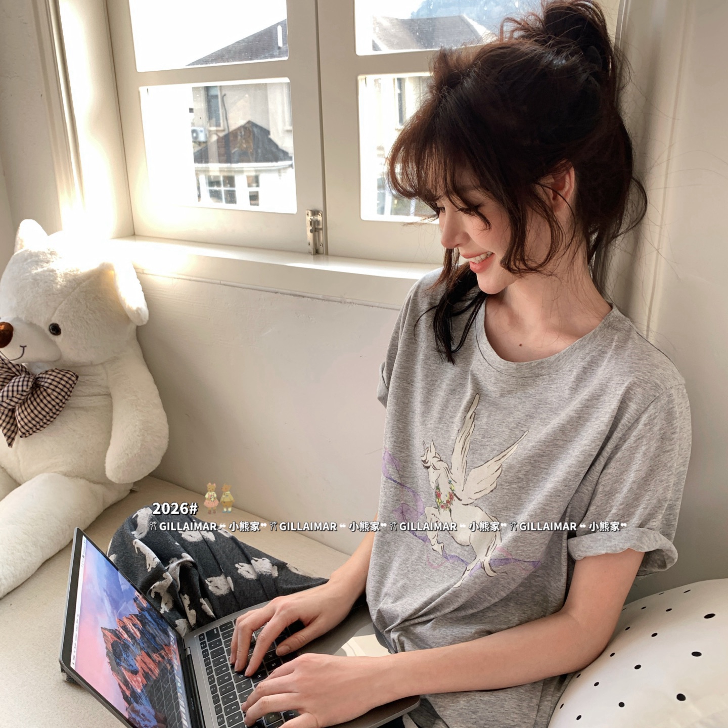 商品名称:妍景家居生活馆 2026新款莱赛尔冰丝棉小熊家-马卡龙家居服 马卡龙-深灰