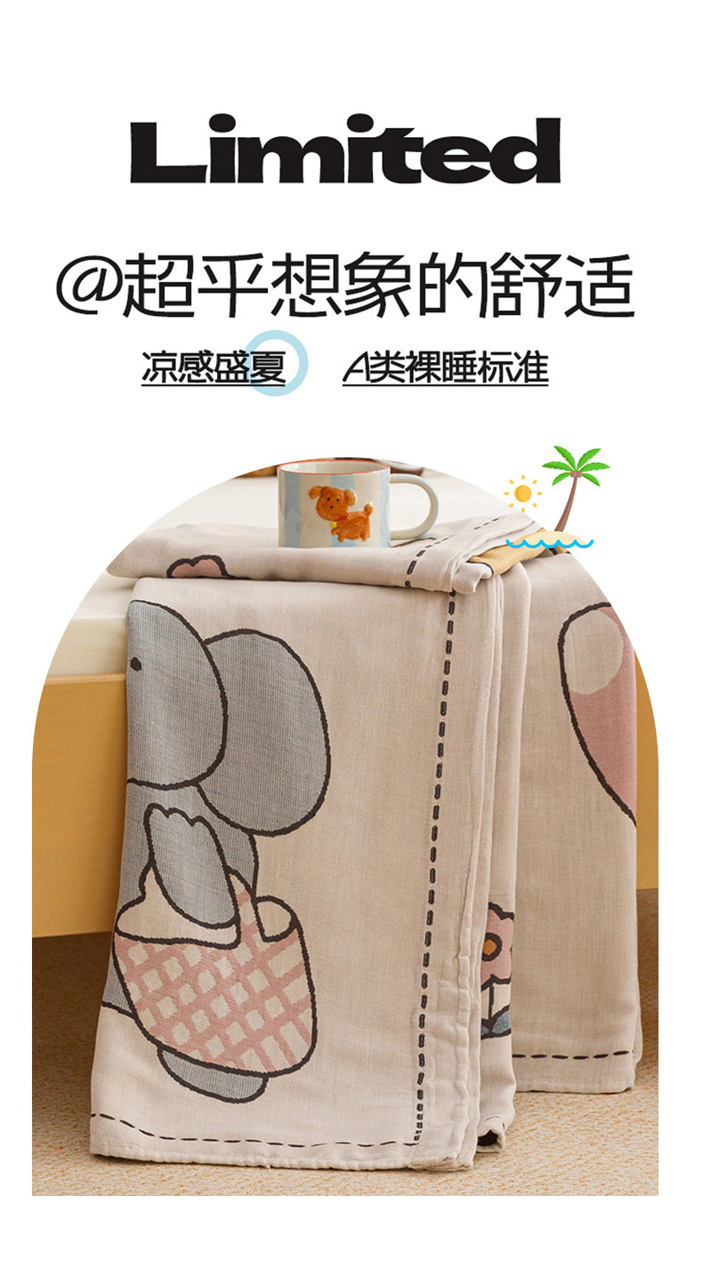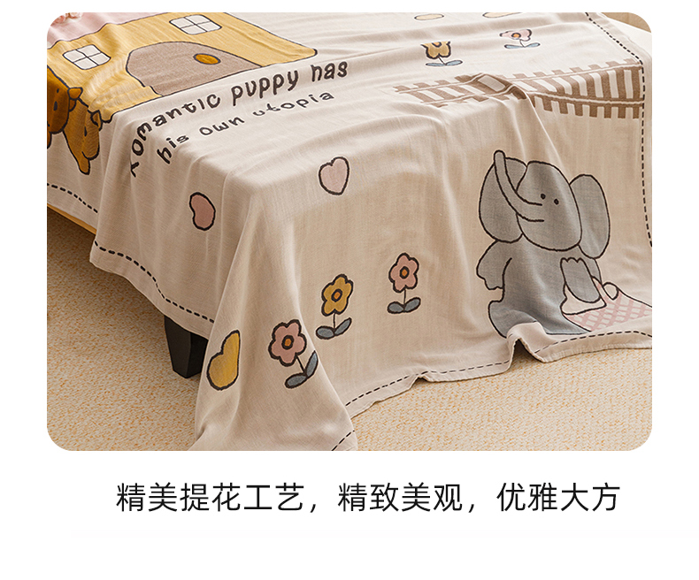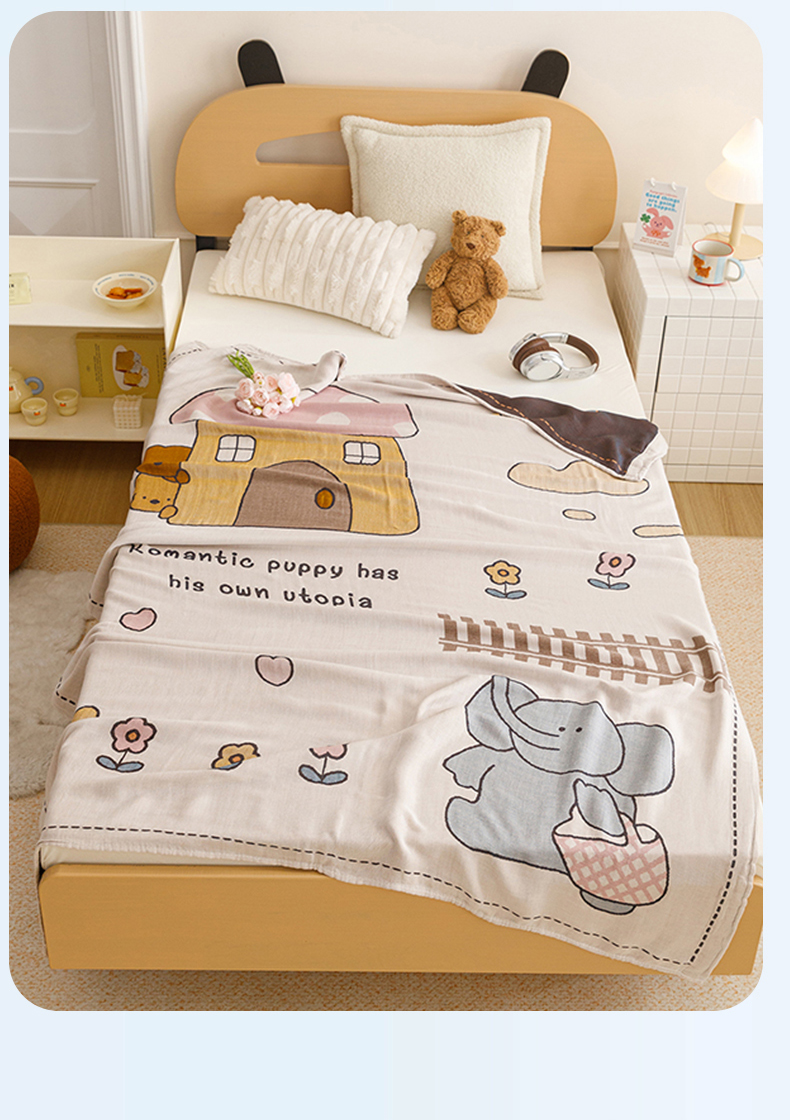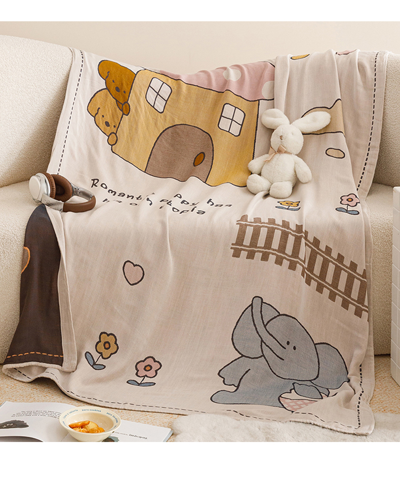 商品名称:悦然毛巾被 2026春夏新款三层竹纤维冷感毯休闲儿童毯成人毛巾被 小象日记