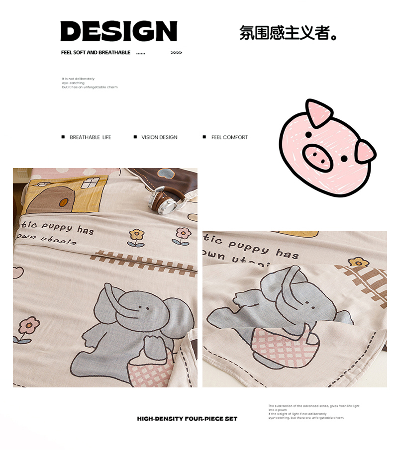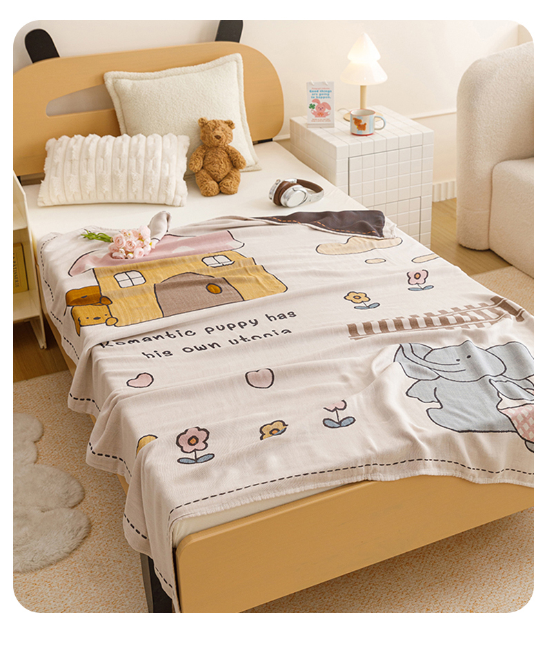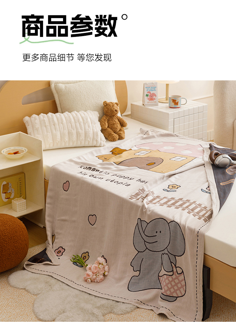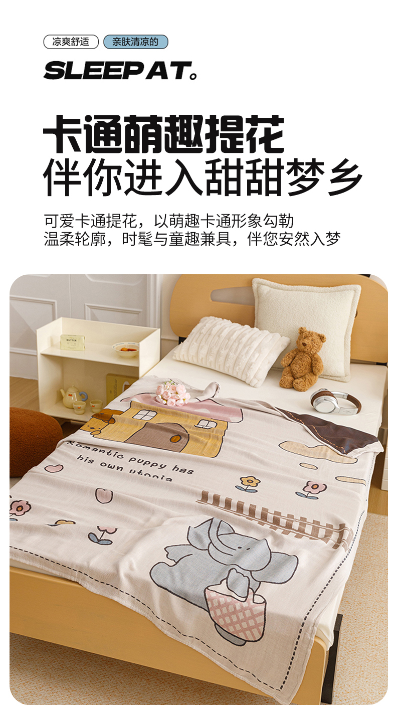 商品名称:悦然毛巾被 2026春夏新款三层竹纤维冷感毯休闲儿童毯成人毛巾被 小象日记