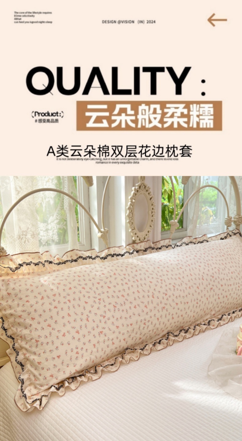 (总)梦舒羽 2026新款A类云朵棉蕾丝双层花边枕套加长双人情侣1.8米枕芯内胆套1.5m枕头,樱桃花语,浮影,花时令,花田洛,蓝岛风铃,黎梦,绿涧,苏颜粉,幸运熊,旋转木马