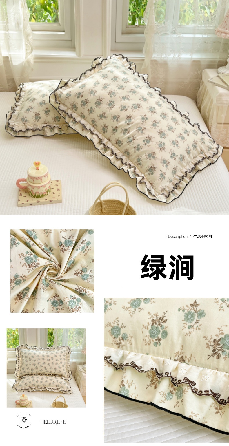 商品名称:圣比熊 2026新款A类云朵棉蕾丝双层花边枕套宿舍单人单只一只装枕芯48x74cm内胆套 绿涧