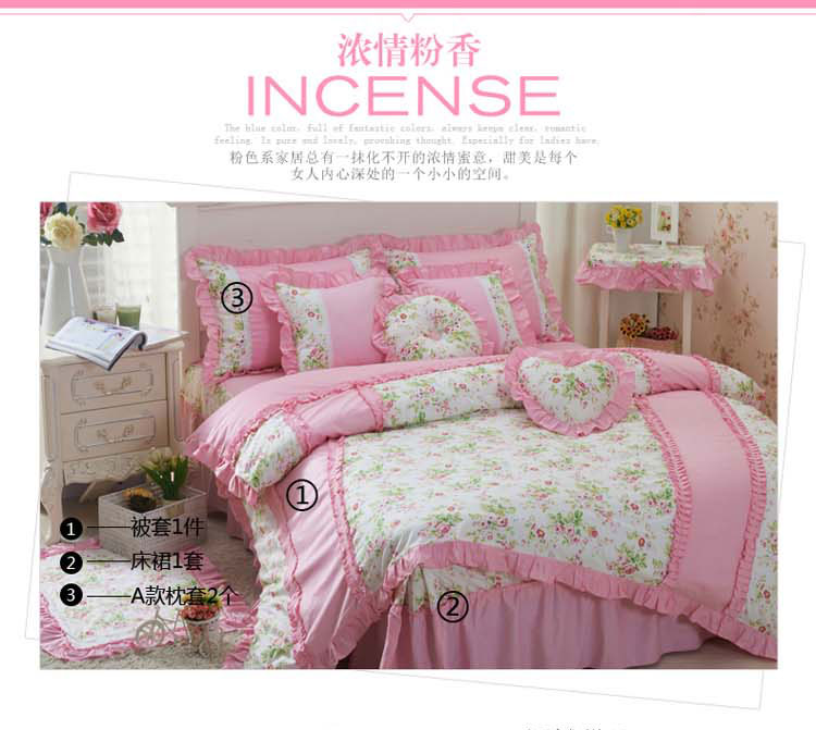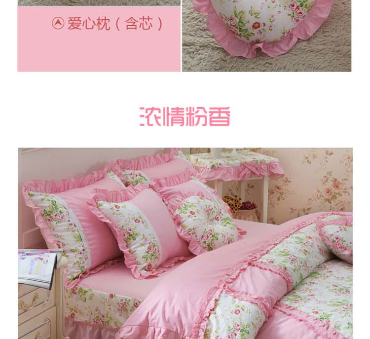 菊尚家纺 全棉13372韩版蕾丝床裙四件套浓情粉香