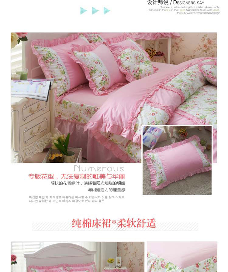 商品名称:菊尚家纺 全棉13372韩版蕾丝床裙四件套浓情粉香