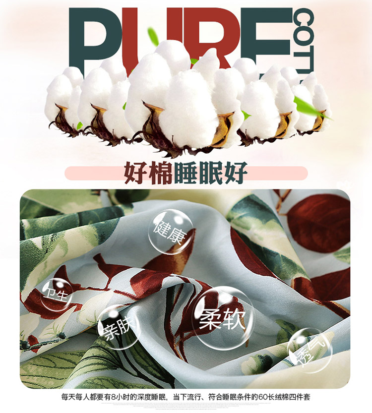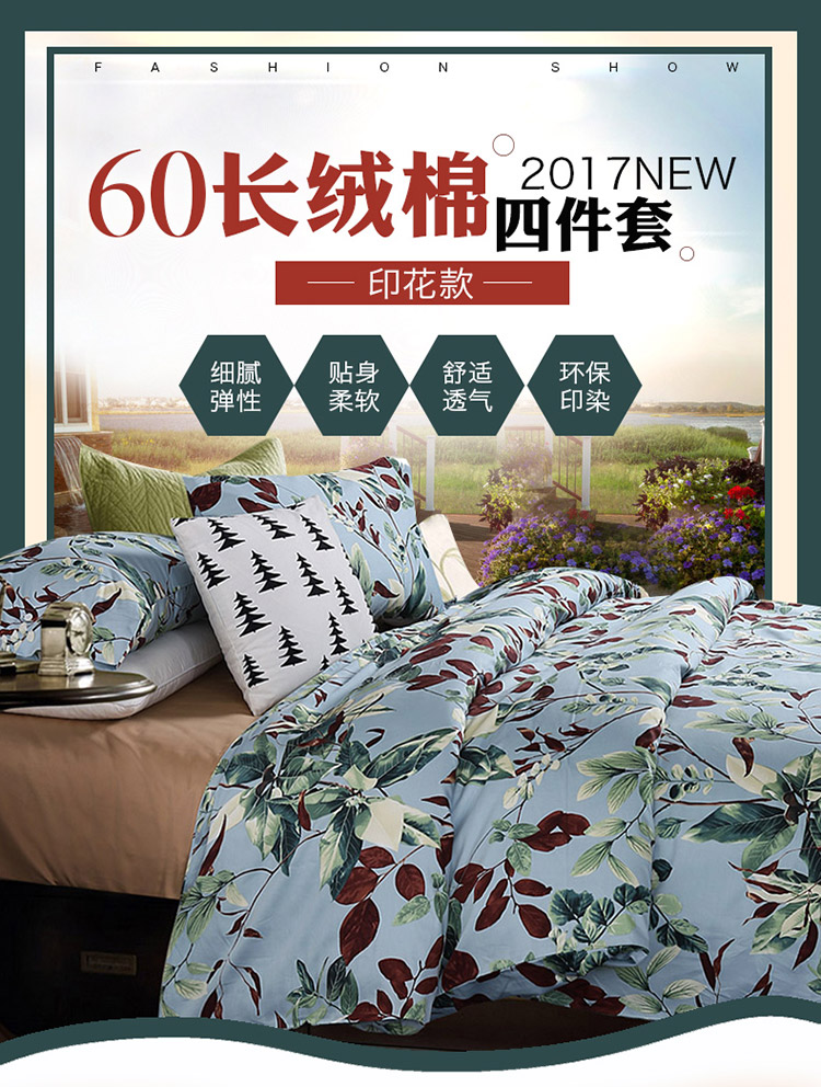 商品名称:太古汇家居 60长绒棉(印花)四件套 尤兰达TGH022