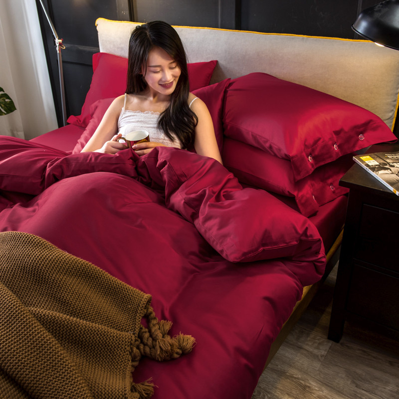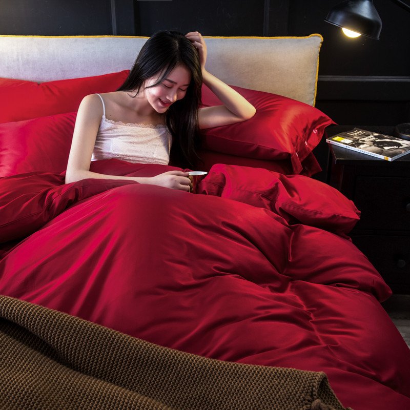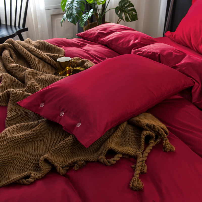 馨蕊家居 60长绒棉纯色款深色系梦娜红