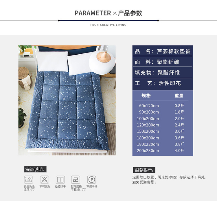 当前位置: 91家纺网 > 商品网购 > 床垫/床褥/床护垫 > 普通床垫 > 梦莱发被业 2025新款芦荟棉软垫被 星座恋人