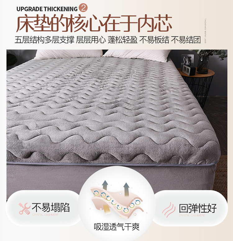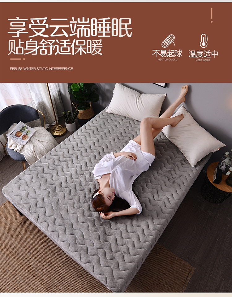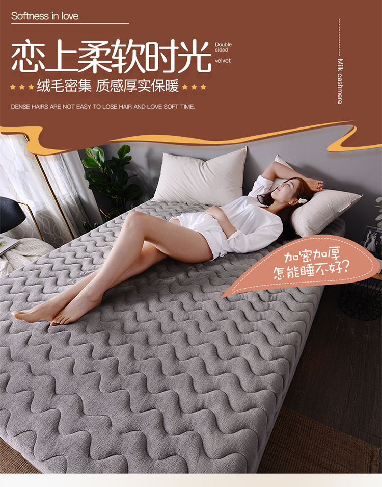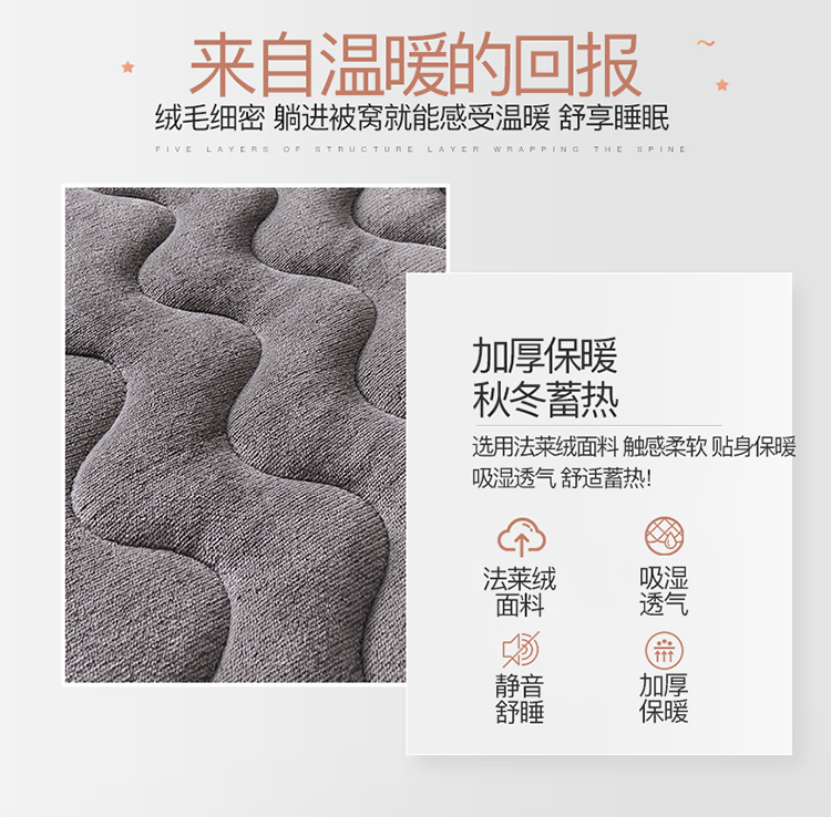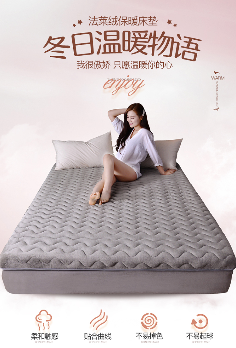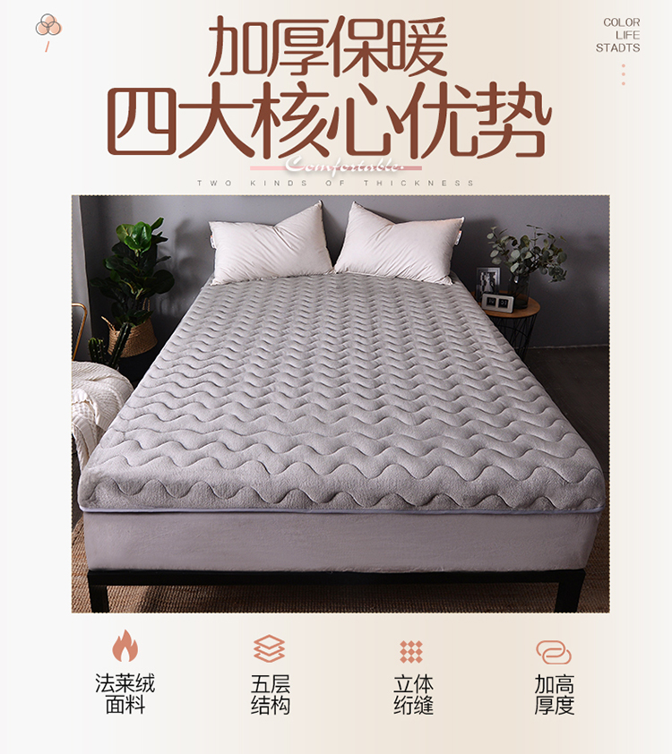 商品名称:欣罗兰 2022新款单边大床法莱绒床垫 卡其灰