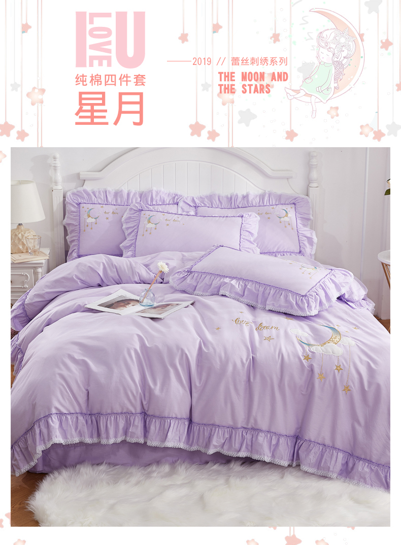 (总)亲亲公主 新款全棉绣花款公主风床单四件套 星月Love