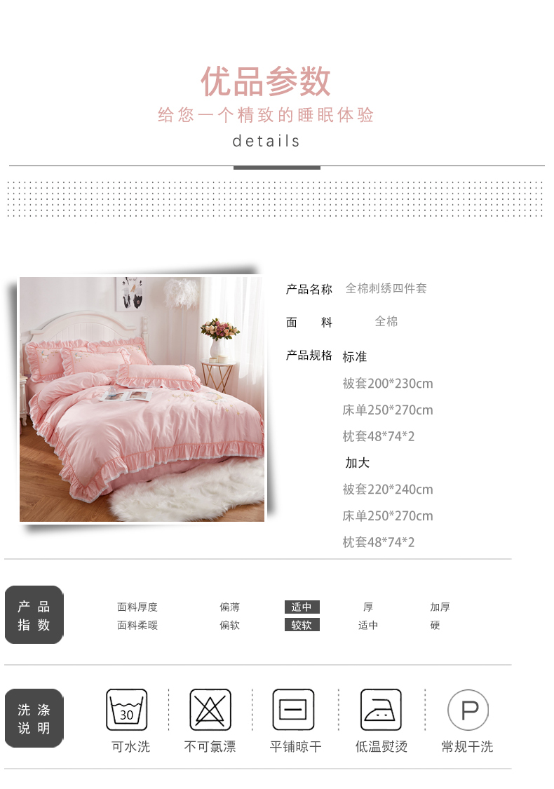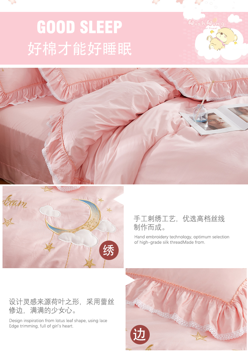 商品名称:(总)亲亲公主 新款全棉绣花款公主风床单四件套 星月Love