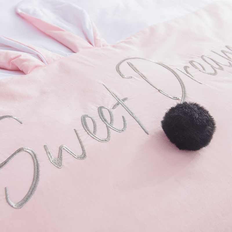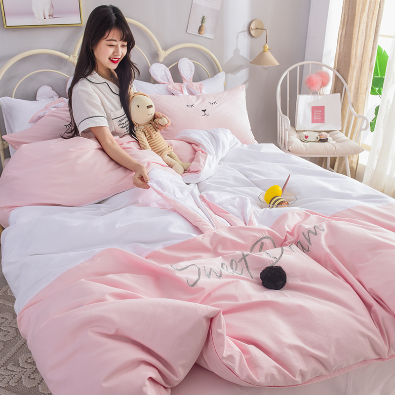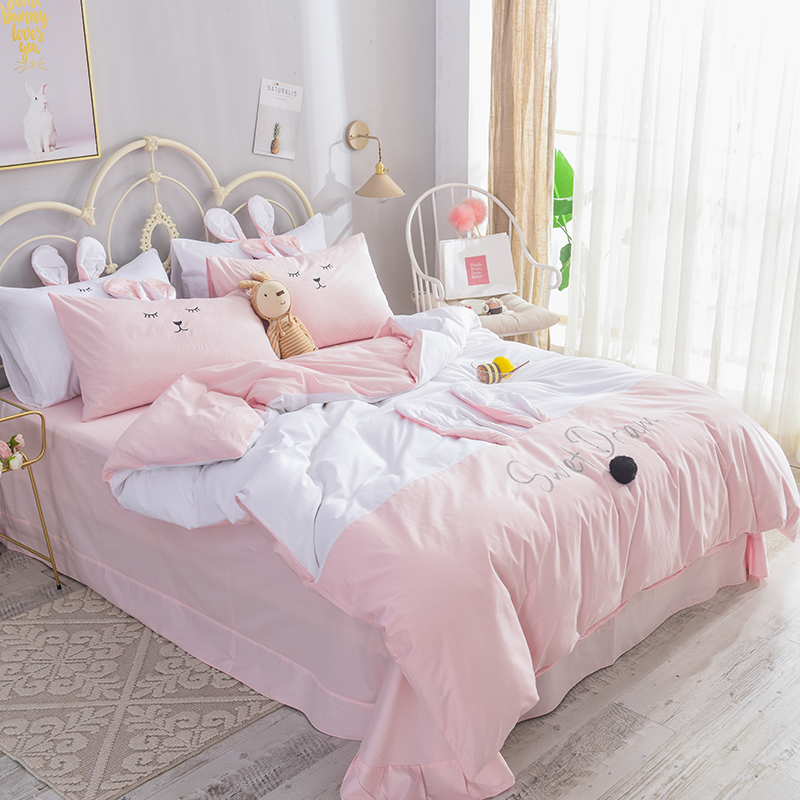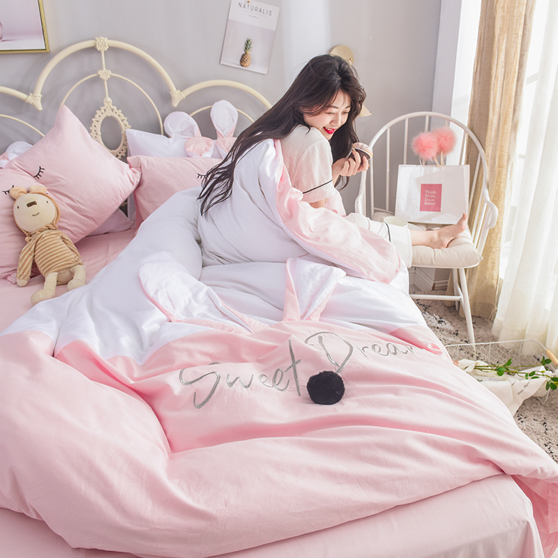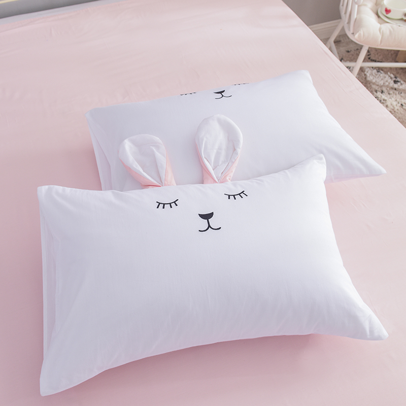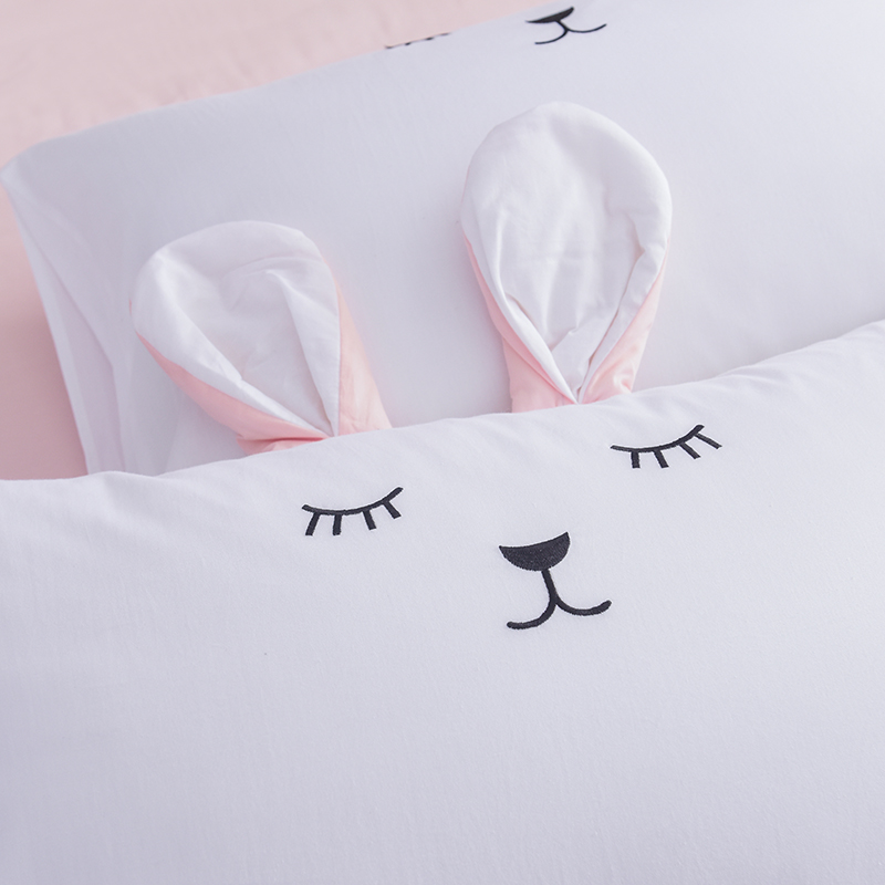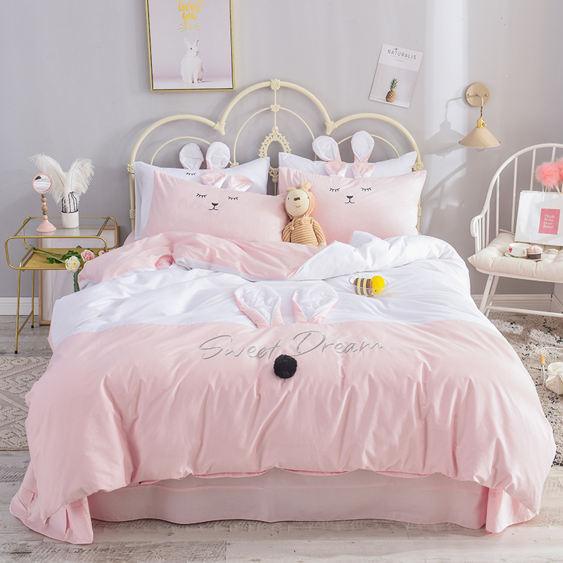 漫调家纺 2019新款ins爆款全棉兔耳朵四件套 甜心粉-白