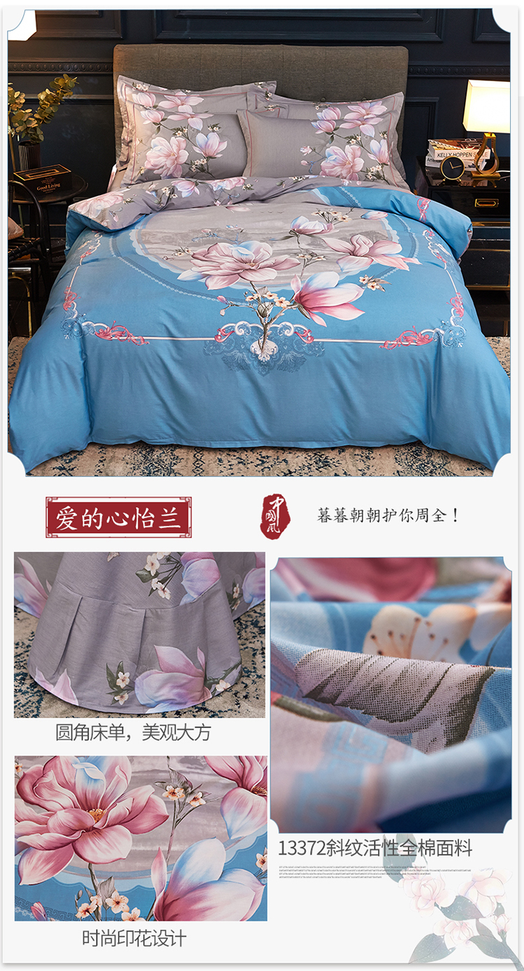 雲归梦家纺2019新款13372全棉活性大版四件套爱的心怡兰
