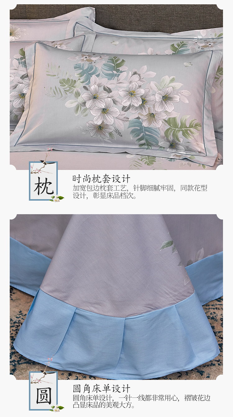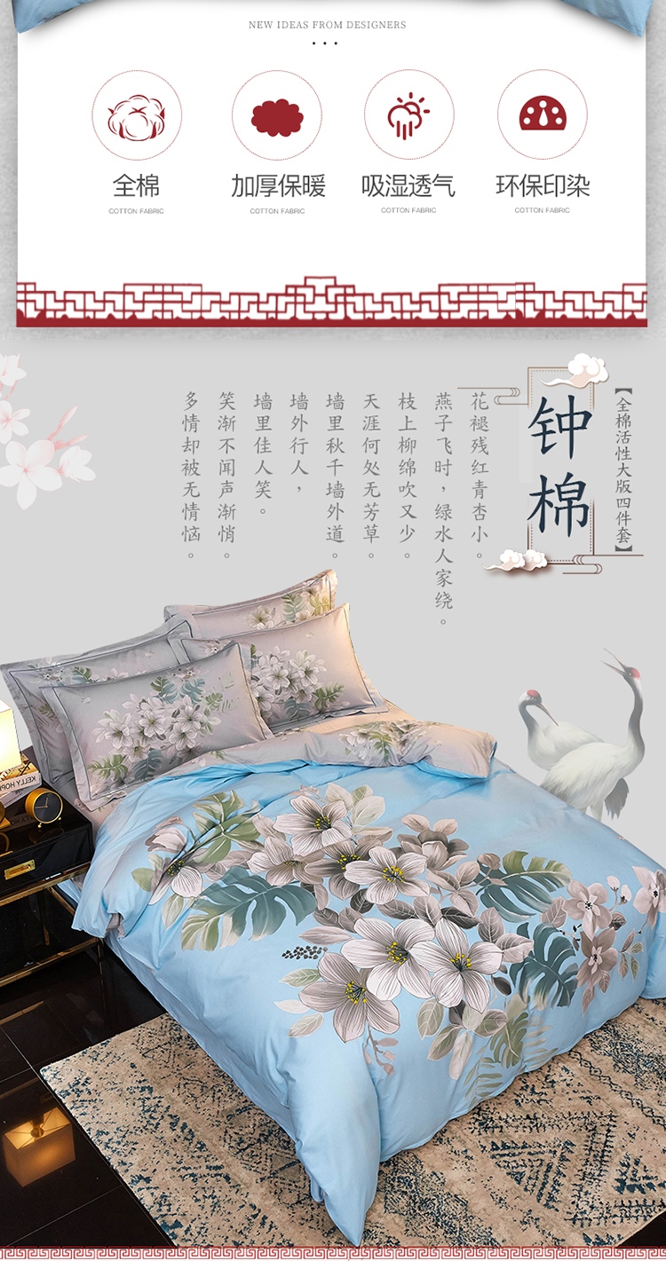 雲归梦家纺 2019新款13372全棉活性大版四件套 花月吟