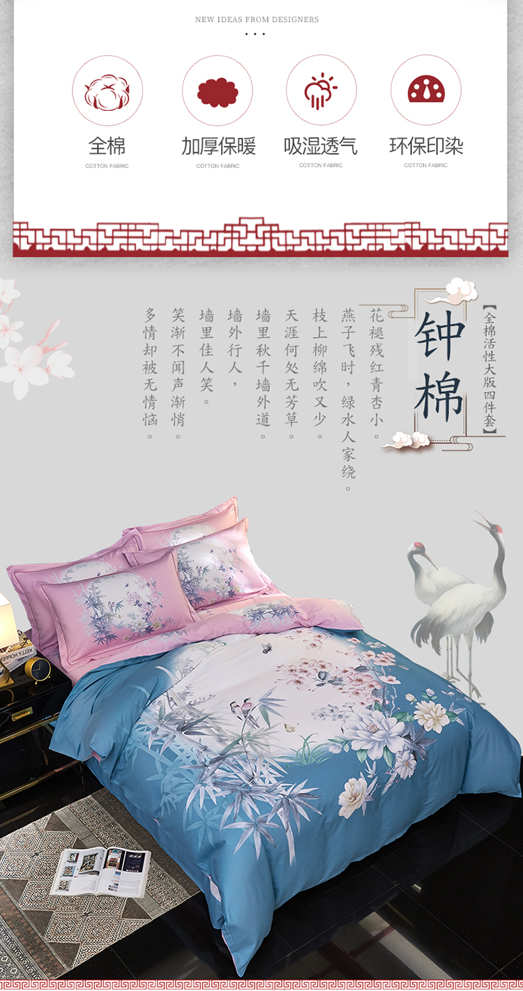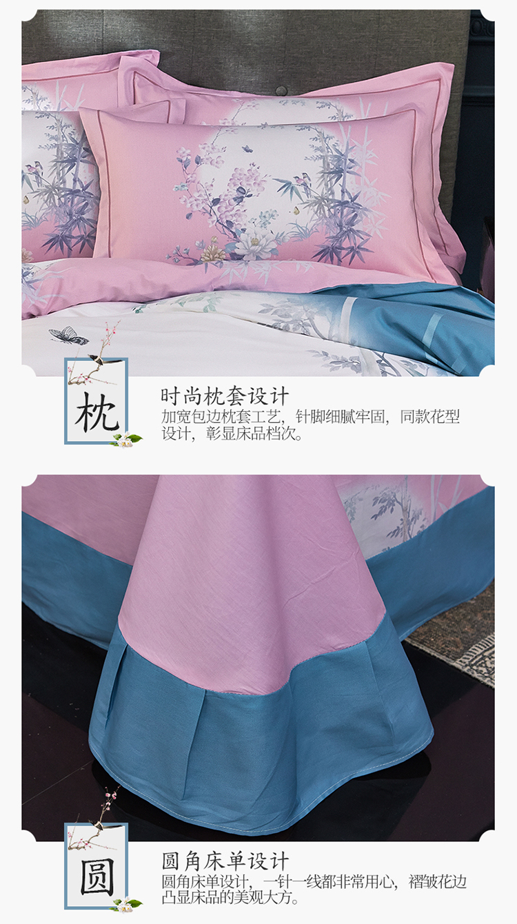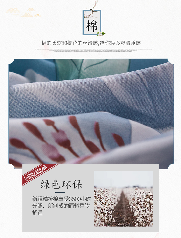 雲归梦家纺 2019新款13372全棉活性大版四件套 竹恋兰