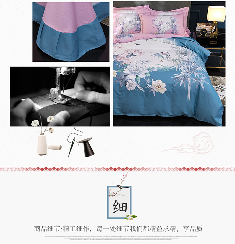 商品名称:雲归梦家纺 2019新款13372全棉活性大版四件套 竹恋兰
