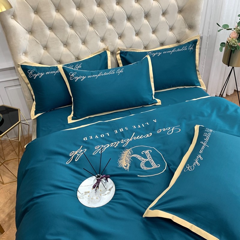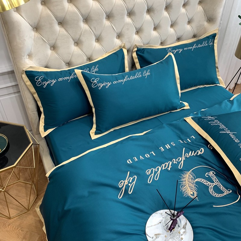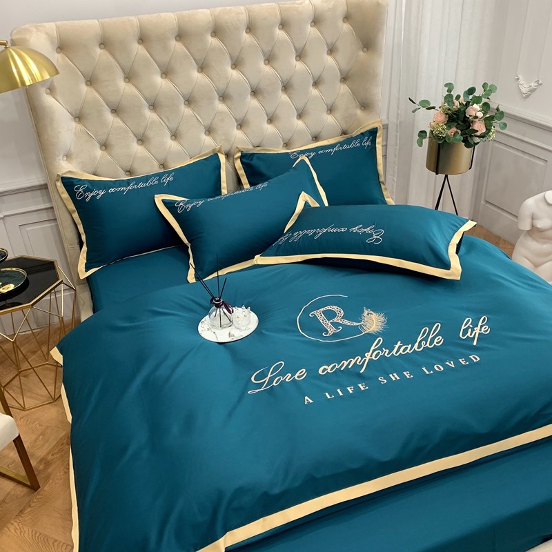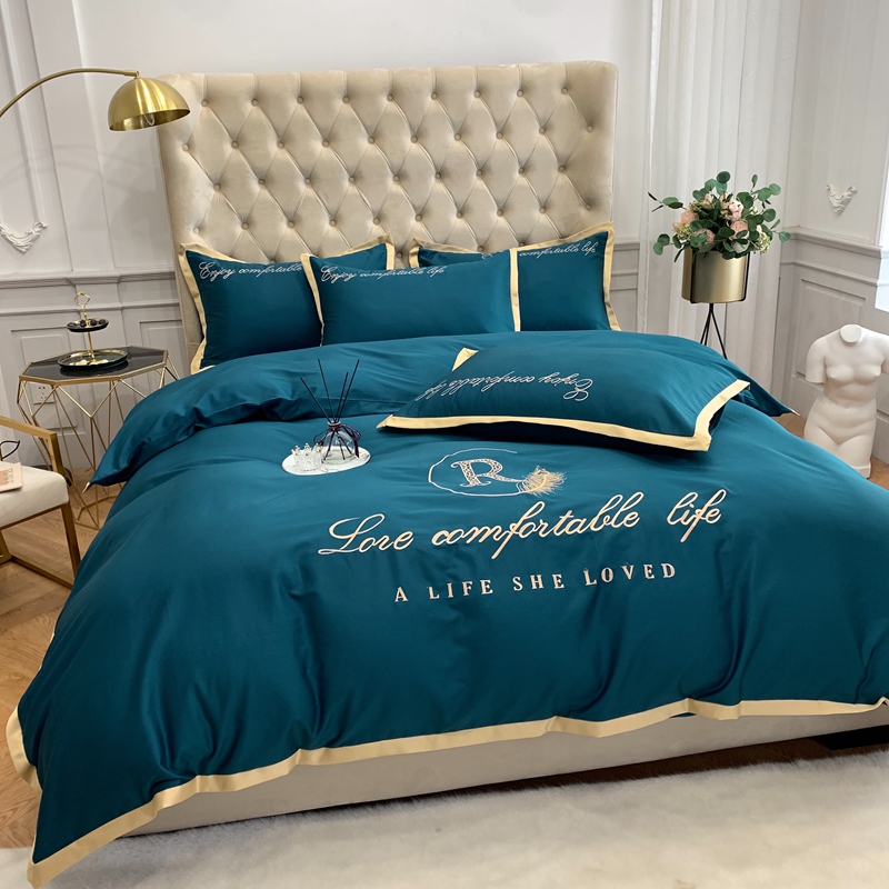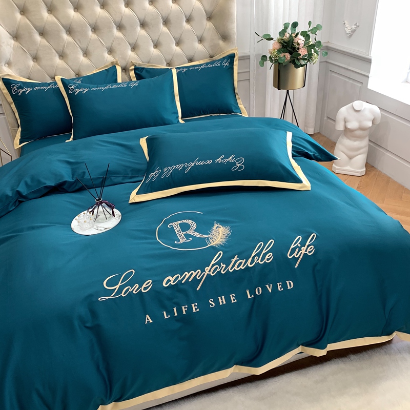 馨蕊家居 2021新款60长绒棉四件套简爱系列 简爱-浅石蓝