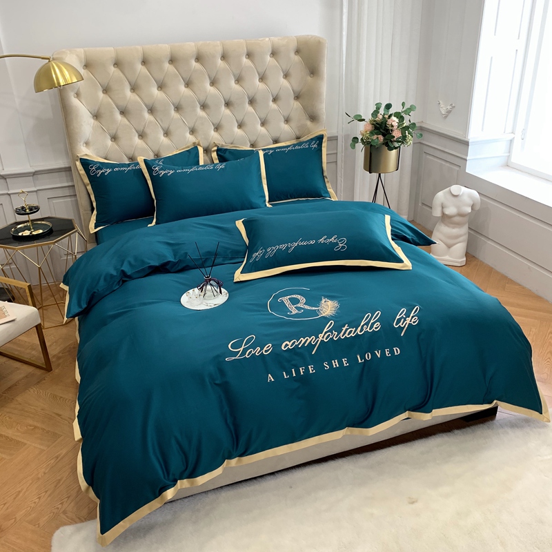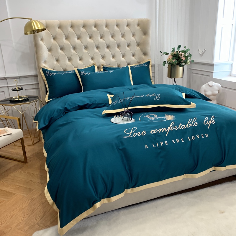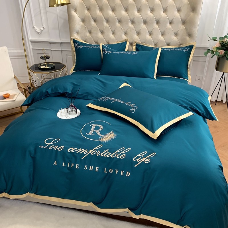 商品名称:馨蕊家居 2021新款60长绒棉四件套简爱系列 简爱-浅石蓝