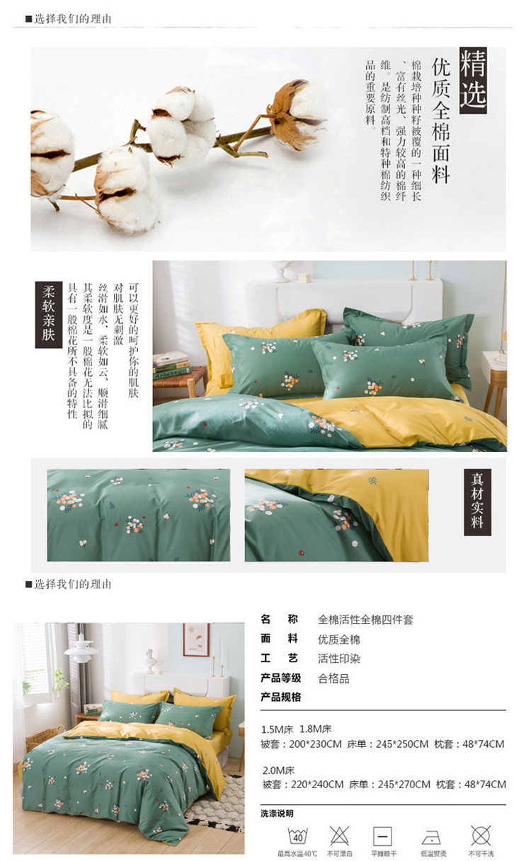 (总)星期三 2021年7月新款铂金全棉13372四件套(加老板微信有会员价),诺微花开,仙菊,小轮船,小糖豆,月光恋曲-绿