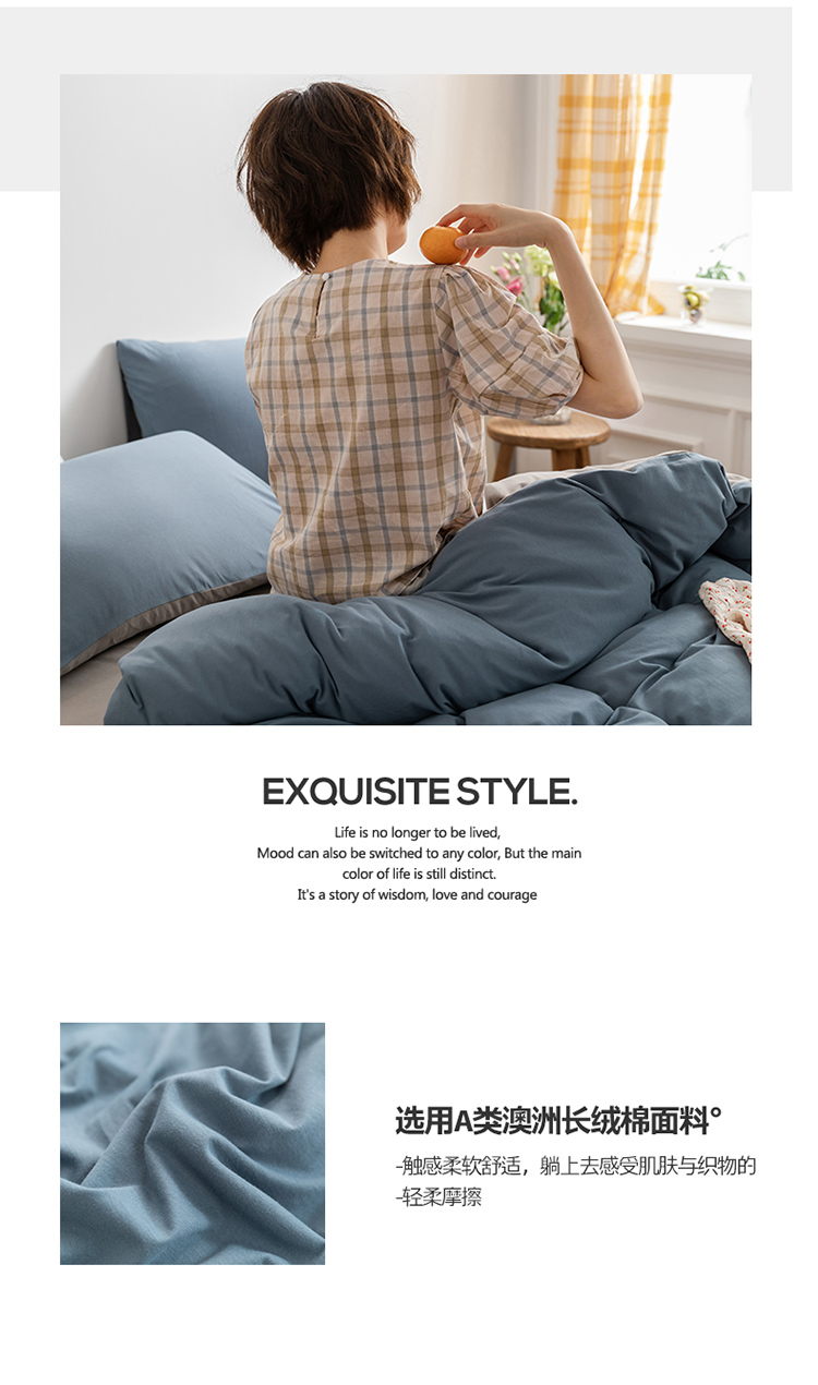 当前位置: 91家纺网 > 商品网购 > 床品套件 > 四件套 > 全棉普通四件套 > 风向标 A类全棉素色(双拼&撞色)四件套 双拼-蓝霜