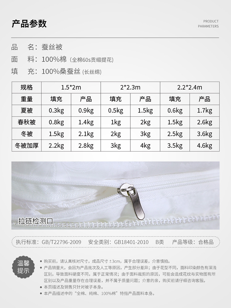 • 蚕丝含量: 90%(含)-95%(不含)
